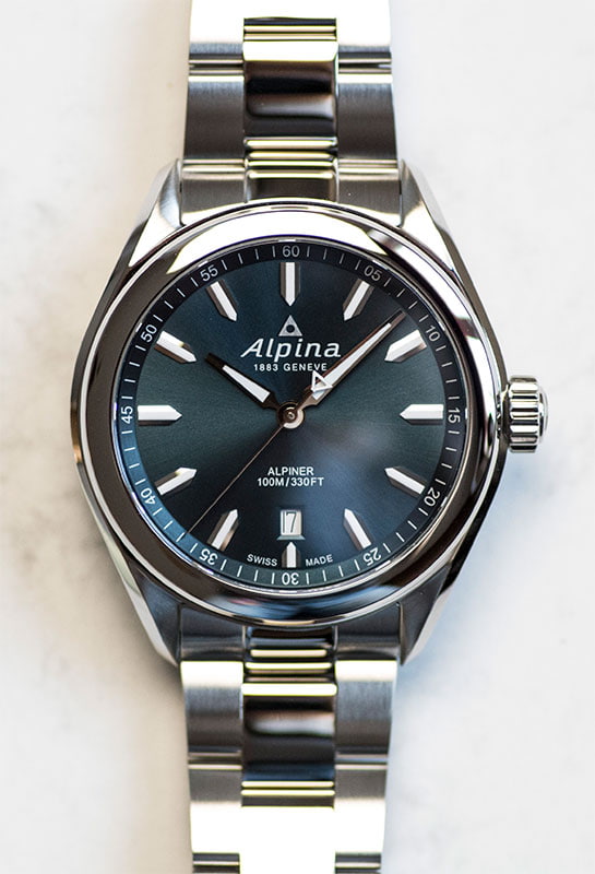 Alpiner Quartz uspokojí potřebu klasických sportovních hodinek. Kvintesence sportovní elegance značky, rafinovaný quartzový Machineek AL-240 zvládá hodiny, minuty, sekundy a datum v 6 hodin, chráněný konvexním safírovým sklíčkem odolným proti poškrábání zasazeným do 42mm pouzdra, které je vodotěsné do 100 m. /330 stop Při zachování elegantního a sportovního designu se tento model stává skutečnou hodnotou za peníze. Náramek celý vyrobený z nerezové oceli. Ikonická barva ciferníku „glacier blue“ se vyznačuje sluncem broušeným povrchem, jasnými indexy a ručně aplikovanými luminovými ručičkami. Alpiner dává nadšencům Alpina nadčasový sportovní prvek a zároveň zajišťuje plný výkon v extrémních podmínkách.