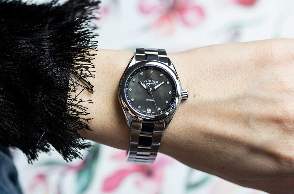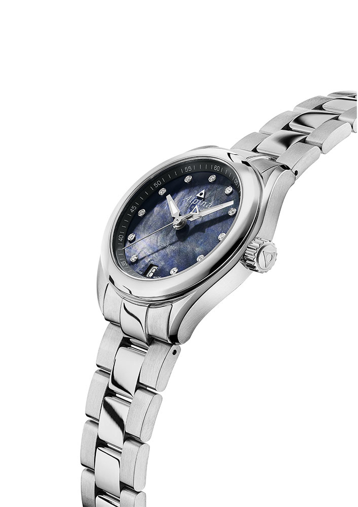 Švýcarský hodinářský vydavatel ALPINA , který patří k nejstarším v hodinářském segmentu, představuje model, který je přesným odrazem ženskosti. Zobrazuje hodinky s nejbohatším obsahem uprostřed. Interiér AL-240MPBD2C6B se odhaluje v originální a poutavé verzi s černou perletí, kterou zdobí 11 exkluzivních diamantů. Zaměřením na ty nejvzácnější a nejžádanější komponenty, jako jsou ty výše zmíněné, měl výrobce nepochybně v úmyslu poukázat budoucímu majiteli na jeho nekompromisní jedinečnost a hluboce skrytý potenciál pro velké věci. Dalšími prvky, které sdílejí i prostor na ciferníku, jsou sportovní ručičky a datumové okénko v nezvyklém uspořádání na pozici šesté hodiny. Ručně aplikované stříbrné indikace byly navíc obohaceny o luminiscenční látku, která v podmínkách nedostatku nebo nedostatku osvětlení jasně označí diamant odpovídající aktuální hodině a zbytek v podobě minut/sekund.