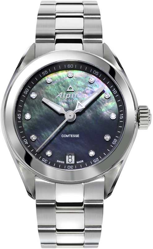 Alpina Comtesse AL-240MPBD2C6B je návrh určený ženám, které milují být zabaleny v luxusu. Luxusní a mimořádný, protože umně vetkává ženskou eleganci do sportovního rámu. Hodinky, které osloví ženy s vysokými aspiracemi, tendencí překonávat vlastní limity a individuálním přístupem ke stylu.