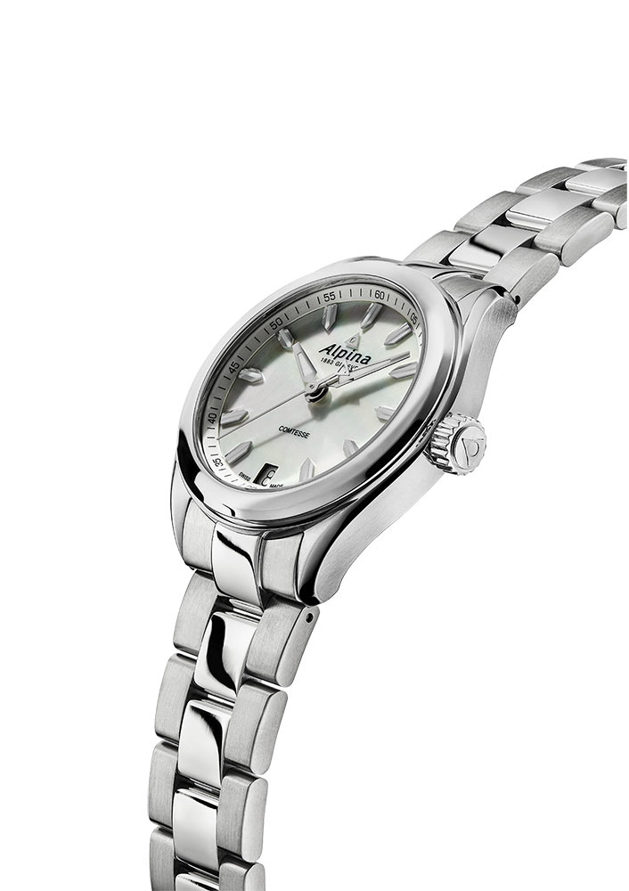 Alpina Comtesse AL-240MPW2C6B je návrh určený ženám, které milují být zabaleny v luxusu. Luxusní a mimořádný, protože umně vetkává ženskou eleganci do sportovního rámu. Hodinky, které osloví ženy s vysokými aspiracemi, tendencí překonávat vlastní limity a individuálním přístupem ke stylu.