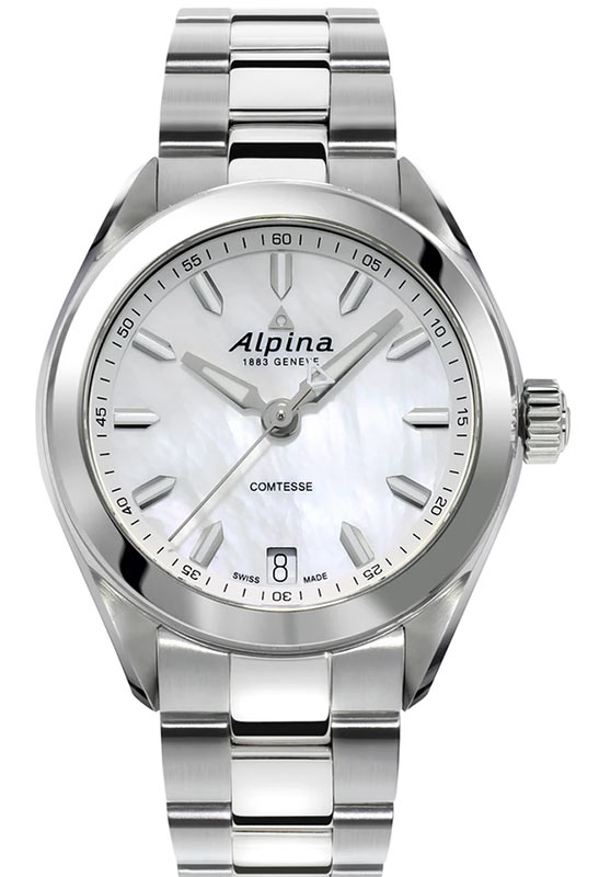 Švýcarský hodinářský vydavatel ALPINA , který patří k nejstarším v hodinářském segmentu, představuje model, který je přesným odrazem ženskosti. Zobrazuje hodinky s nejbohatším obsahem uprostřed. Interiér AL-240MPW2C6B je odhalen v originální a poutavé verzi s bílou perletí, kterou zdobí 11 stříbrných indexů. Zaměřením na ty nejvzácnější a nejžádanější komponenty, jako jsou ty výše zmíněné, měl výrobce nepochybně v úmyslu poukázat budoucímu majiteli na jeho nekompromisní jedinečnost a hluboce skrytý potenciál pro velké věci. Dalšími prvky, které sdílejí i prostor na ciferníku, jsou sportovní ručičky a datumové okénko v nezvyklém uspořádání na pozici šesté hodiny. Ručně aplikované, stříbřité indikace byly navíc obohaceny o luminiscenční látku, která při nedostatku nebo nedostatku osvětlení jasně označí diamant odpovídající aktuální hodině a zbytek v podobě minut/sekund.