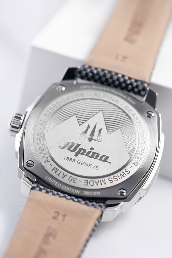 Nové retro diverské hodinky Alpina Seastrong Diver 300 Automatic jsou při této příležitosti symbolickou poctou lodi Calanda, první lodi plující pod švýcarskou vlajkou. Společnost Alpina podniká konkrétní kroky na ochranu životního prostředí, snížení odpadu a ochranu pobřeží od roku 2020 s cílem změnit hodinářský průmysl na průmysl šetrný k životnímu prostředí. Řada Seastrong Diver Gyre Automatic je nejnovějším příkladem. Celých 70 % jeho pouzdra je vyrobeno z plastového odpadu z rybářských sítí a řemínek je vyroben z plastu získaného z recyklovaných lahví. Jeho krabička je rovněž vyrobena z recyklovaného plastu (rPET).
