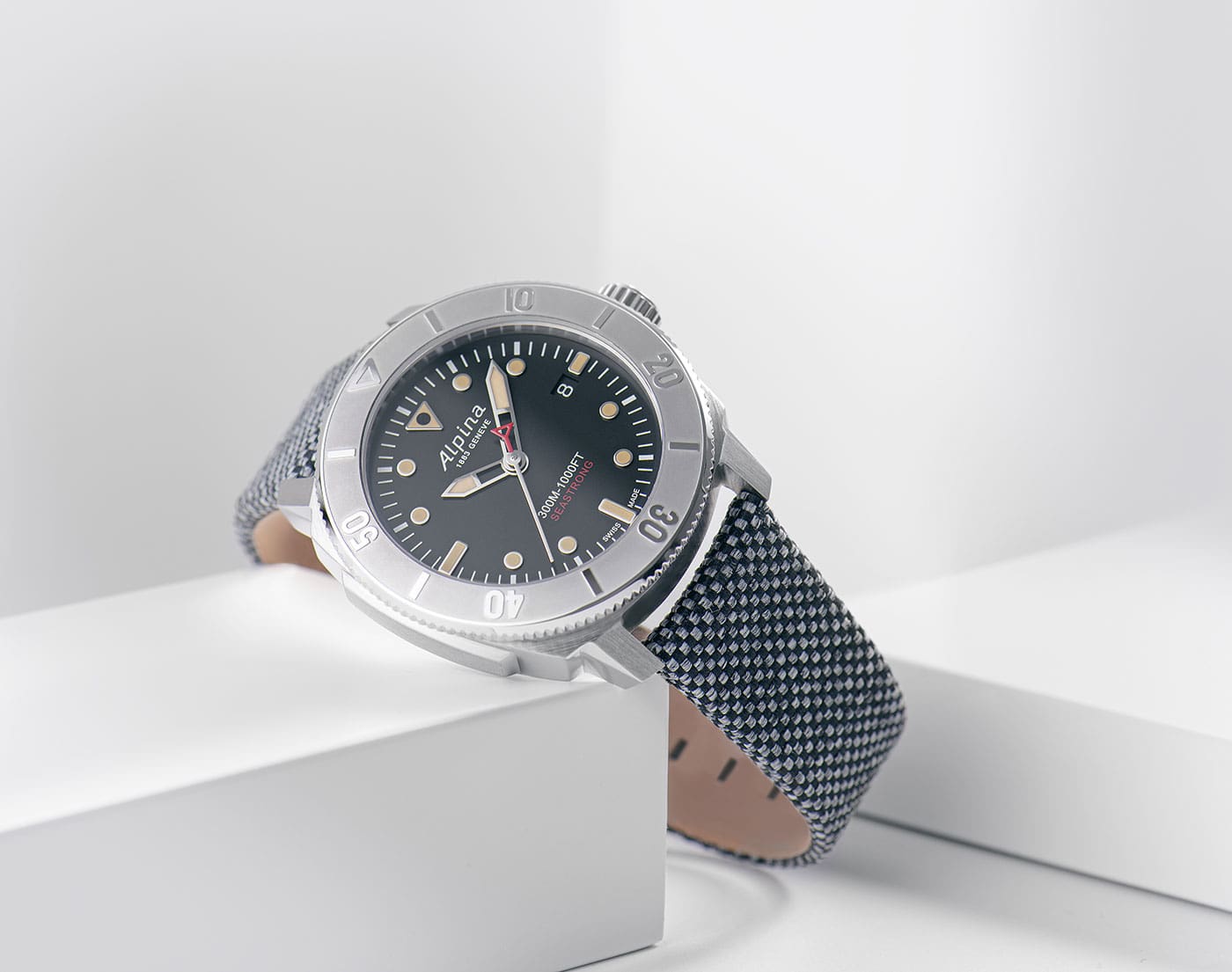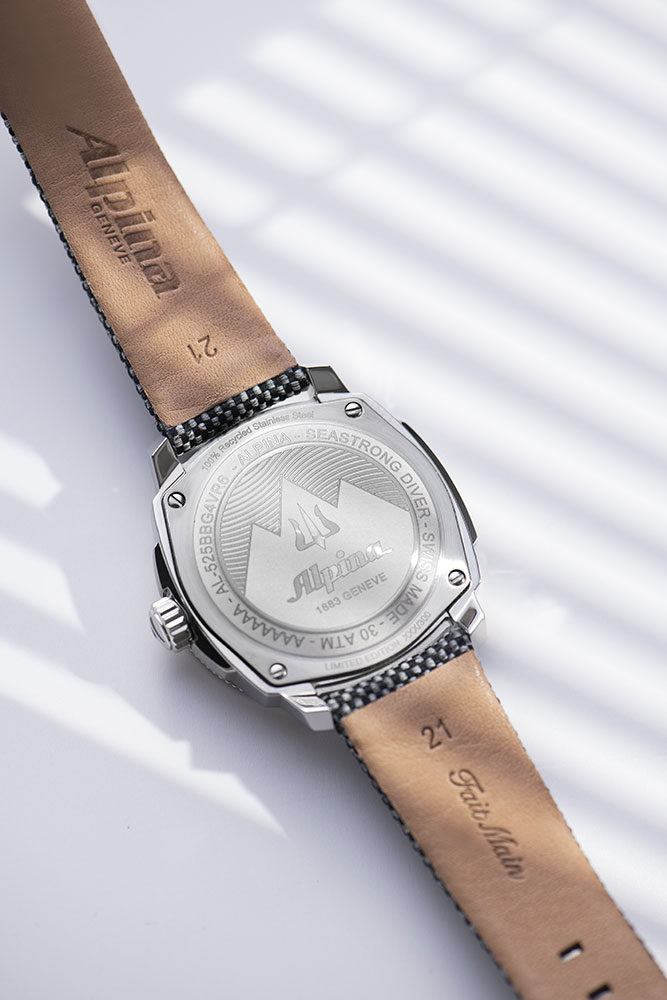 V roce 2022 udělala Alpina na podporu Světového dne oceánů další krok tím, že představila své první hodinky s pouzdrem z recyklované nerezové oceli. Ocel je jedním z nejvíce recyklovaných materiálů na světě a nezbytnou součástí každého udržitelného podnikání. Tento kov je plně recyklovatelný bez ovlivnění vlastností jádra, lze jej recyklovat beze ztrát. Jedna tuna recyklované oceli ušetří 70 % své hmotnosti energie a 1,5 násobku její hmotnosti CO2. Protože recyklace oceli uvolňuje jen málo emisí oxidu uhličitého, splňuje kritéria udržitelnosti a společenské odpovědnosti podniků.