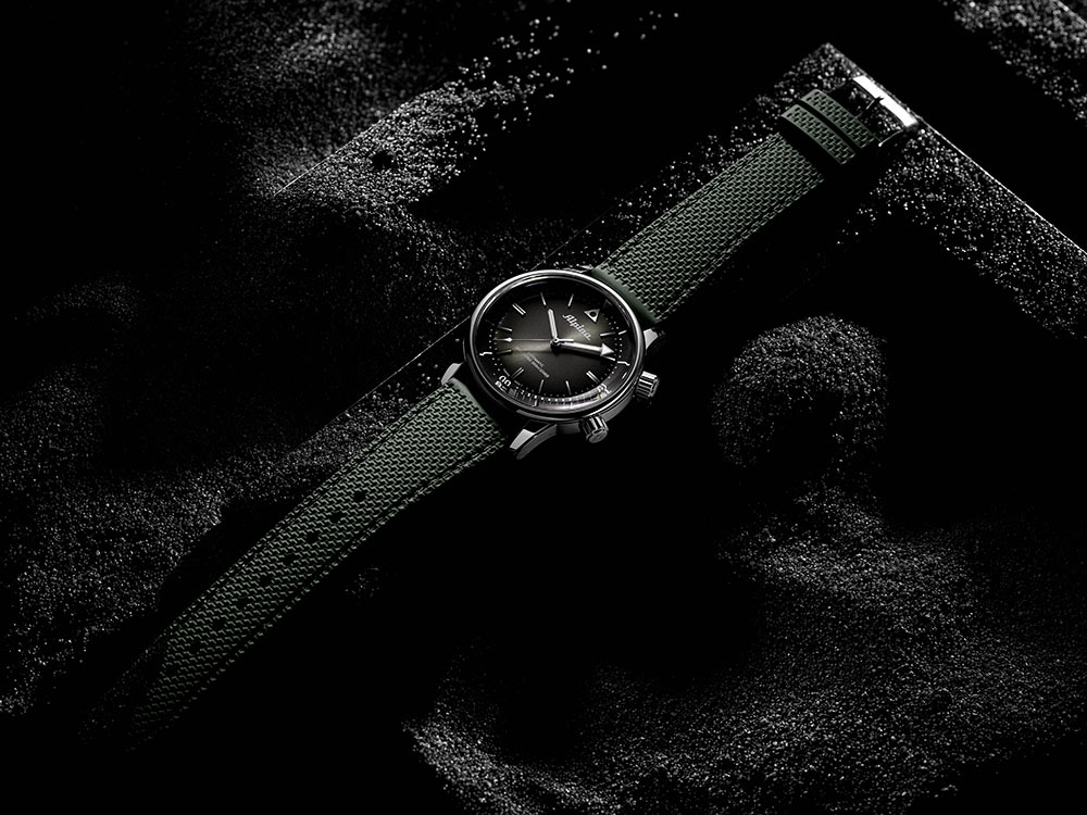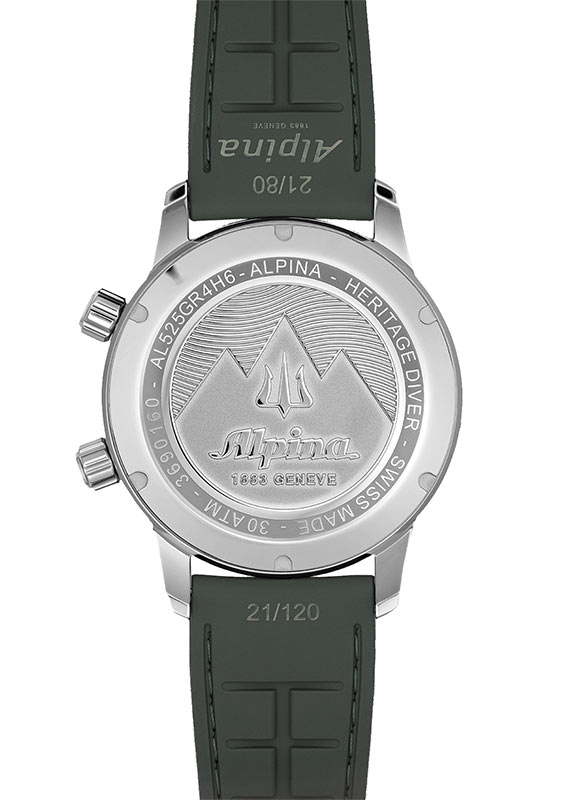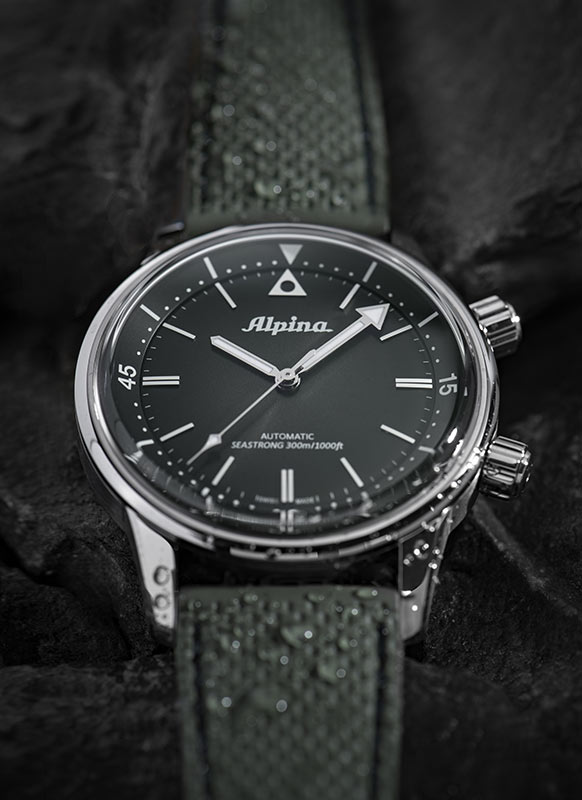 V této svěží verzi se Alpina rozhodla pro zelenou barvu, která obepíná ciferník i pásek. Obecně platí, že hlavní barva pilotních hodinek, zelená je zřídka spojována s diverskými hodinkami. Letos se značka rozhodla opustit vyšlapané cesty. Zelené diverské hodinky Alpina se zrodily v odstínu, který symbolizuje podmořský život a biodiverzitu. Je to pocta oceánu, největšímu ekosystému na Zemi. Lesklý, zářivý povrch rozptyluje světlo rovnoměrně po ciferníku a vytváří záři připomínající sluneční paprsky odrážející se od hladiny vody.