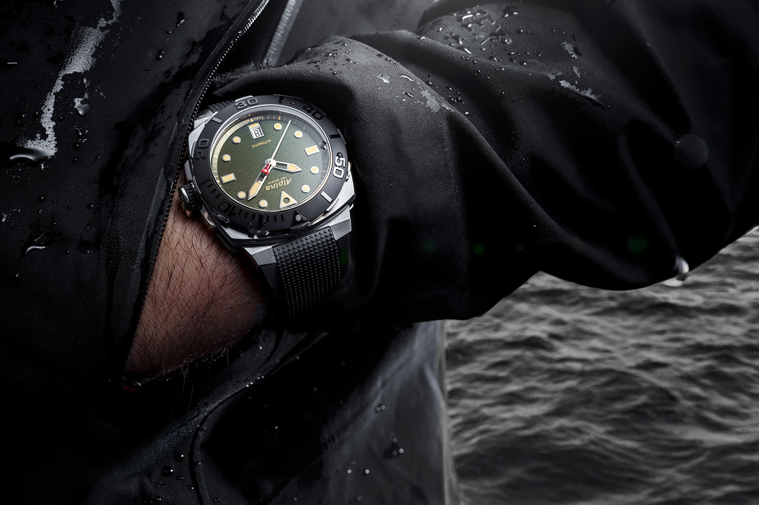 Alpina Seastrong Diver Extreme Automatic AL-525K3VE6 jsou moderní potápěčské hodinky ve sportovním pojetí, které díky zelenému matnému ciferníku v odstínu khaki získávají ještě více outdoorový charakter. Představené během Geneva Watch Days 2025, patří do kolekce Seastrong Diver Extreme – řady vytvořené pro ty, kteří hledají spojení funkčnosti profesionálních potápěčských hodinek s dynamickým designem inspirovaným přírodou a dobrodružstvím.