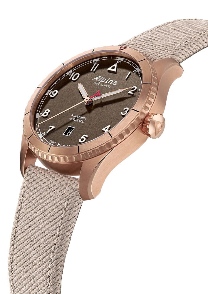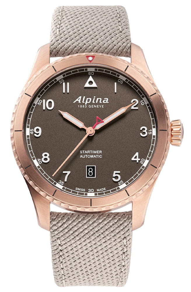 Švýcarský výrobce Alpina se vrací k Originnímu vzhledu svých leteckých hodinek a své kolekci Startimer dává hodinky s novým 41mm pouzdrem, jejichž pečlivě promyšlená ergonomie je spojena s Originními vojenskými hodinkami Alpina. Tato velikost nabízí vynikající kompromis mezi prostornější 44mm a 40mm možností (která zůstává v kolekci). Rámeček byl také přepracován tak, aby doprovázel nové pozlacené pouzdro. Nyní má vlnitý profil, který symbolizuje design 20. století. Vroubkovaná luneta byla vyvinuta v počátcích letectví, aby bylo snazší ji uchopit v rukavicích.