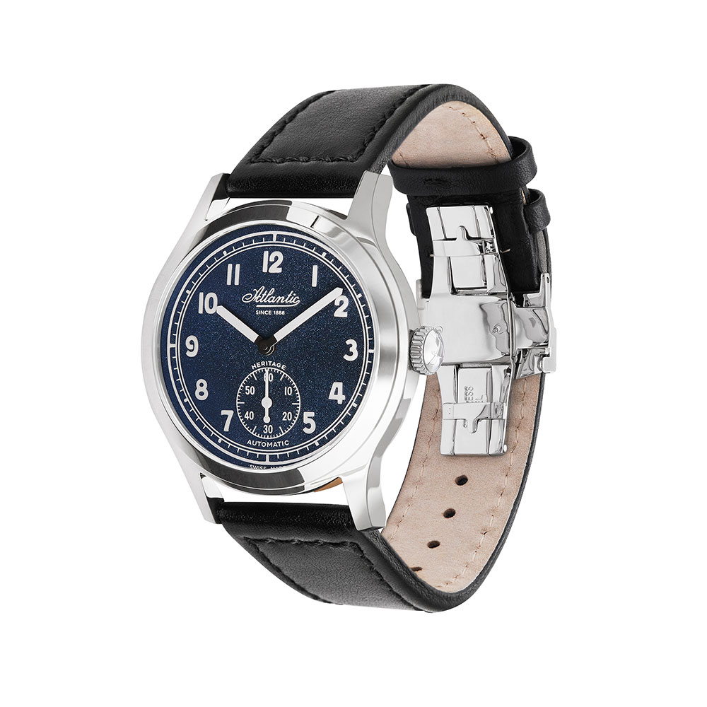 Atlantic Worldmaster Original Heritage Blue jsou vintage automatické pánské hodinky, které splňují moderní standardy kvality. Jeho modrý číselník se vyznačuje zrnitou texturou a přítomností jasně kontrastních arabských číslic zcela vyplněných luminiscenční látkou. Velké ručičky, podsekundová a prsten nad 12hodinovou stupnicí budou ve tmě také jasně zářit. Celek je chráněn tím nejkvalitnějším, téměř nepoškrábatelným, čočkovitým safírovým sklem obohaceným o antireflexní vrstvu. Elegantní, vysoce leštěné 40milimetrové pouzdro je vyrobeno z prvotřídní nerezové oceli pro vynikající odolnost proti poškrábání a korozi. Pouzdro ukrývá spolehlivý švýcarský automatický Machineek Sellita 261-1 s malými sekundami. Hodinky se skleněnými zády, přes které můžete sledovat ohromující práci mechanismu, jsou zavěšeny na prošívaném černém koženém řemínku. Navíc sada obsahuje druhý kožený řemínek.