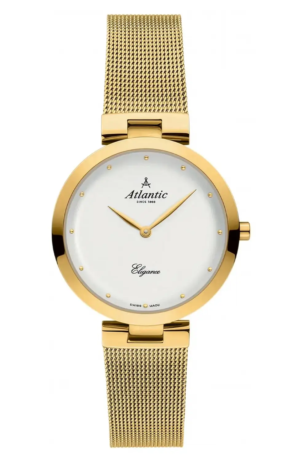 Pozlacené dámské hodinky Atlantic Elegance 29036.45.21MB byly navrženy pro ženy, které si v módě cení jasnosti, rovnováhy a moderní klasiky. Pouzdro se zlatou PVD vrstvou, mesh náramek a minimalistická forma vytvářejí model, který nepotřebuje žádné další ozdoby, aby upoutal pozornost. Tento model se skvěle hodí jako elegantní, ale nenápadný doplněk – do práce, na setkání nebo na večer.
