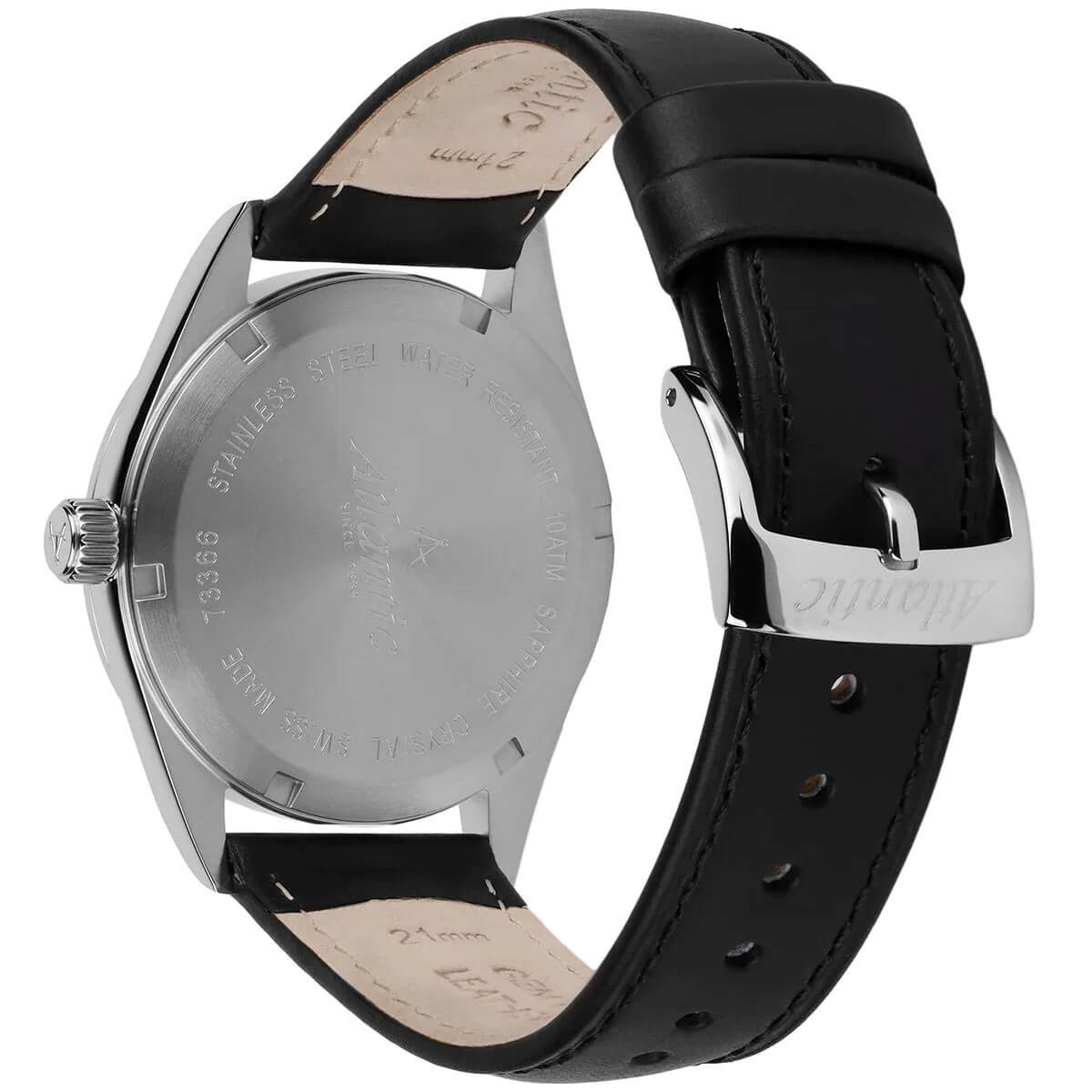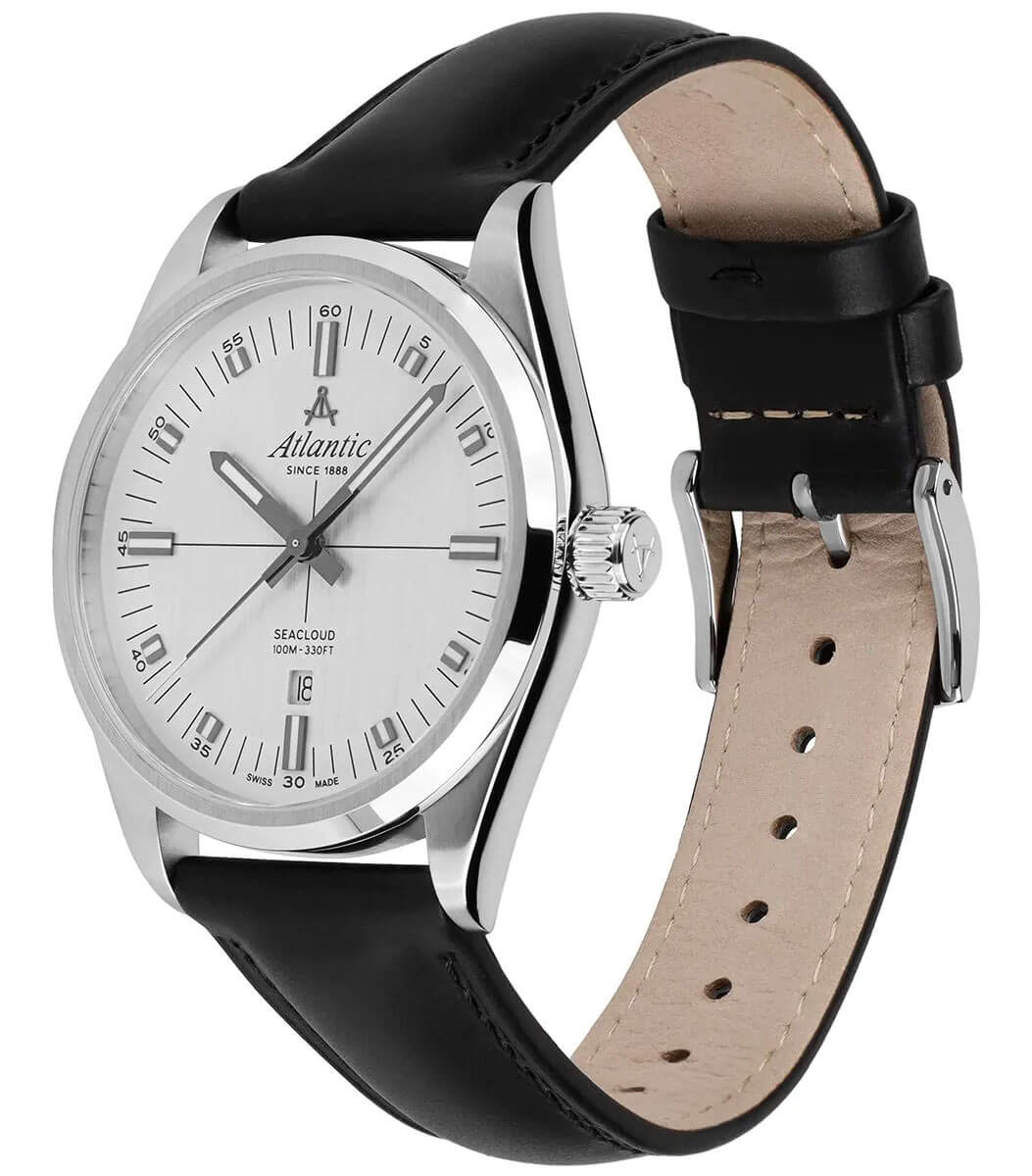 Robustní pouzdro o průměru 40,5 mm, vyrobené z nerezové oceli s jemným kartáčovaným povrchem, dodává hodinkám eleganci a podtrhuje jejich odolnost. Švýcarské pánské hodinky Atlantic 733614121 se vyznačují vysokou vodotěsností — až do 100 metrů, což je činí odolnými vůči dešti, většímu postříkání i náhodnému kontaktu s vodou — perfektně se hodí jak do kanceláře, tak pro aktivní odpočinek. Atlantic Seacloud je vybaven černým koženým řemínkem, který dokonale doplňuje jejich klasický vzhled. Tento řemínek není jen elegantní, ale také velmi pohodlný – měkká kůže se skvěle přizpůsobí zápěstí a zajišťuje pohodlné nošení po celý den, bez ohledu na příležitost.
