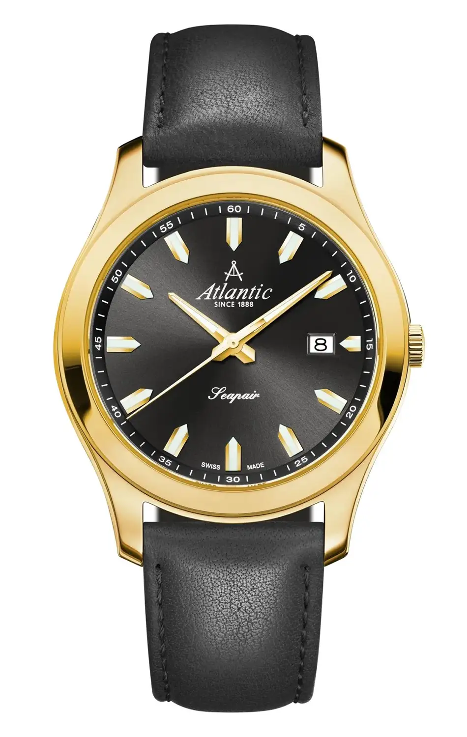Pánské hodinky Atlantic Seapair 60330.45.69 jsou klasický pánský model, který spojuje eleganci pozlaceného pouzdra s funkčností každodenního doplňku. Pouzdro o průměru 42 mm bylo vyrobeno z ušlechtilé oceli a pokryto odolnou vrstvou PVD ve zlatém odstínu, což dodává časomíře výrazný, ale vyvážený charakter. Celek doplňuje černý řemínek z přírodní kůže, který podtrhuje univerzální styl hodinek a zajišťuje, že perfektně sedí na zápěstí — bez ohledu na příležitost.