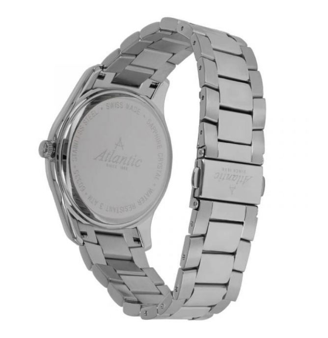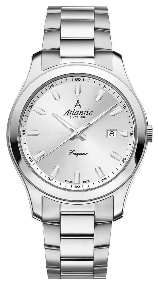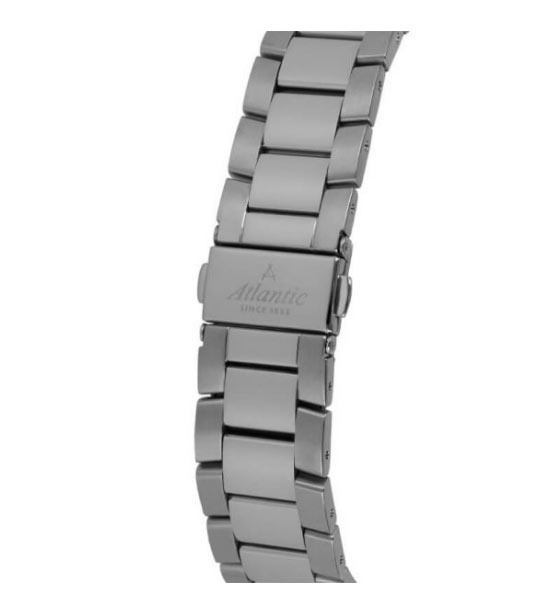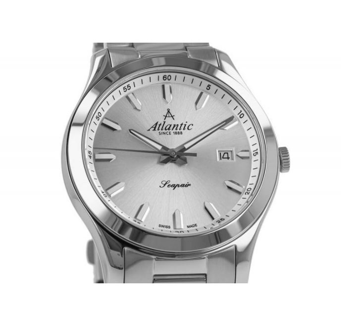 Pánské hodinky Atlantic Seapair 60335.41.29 . Monochromatický model v klasickém stylu vyrobený z nerezové oceli 316L a vybavený exkluzivním safírovým sklíčkem proti poškrábání. Pouzdro 42 mm s elegantním lesklým povrchem je zavěšeno na třířadém náramku s broušenými stranami a lesklým středem. Stříbrný, leštěný ciferník má aplikovaných 12 hodinových indexů, které jsou spolu s hodinovou a minutovou ručkou vyplněny luminiscenční hmotou. Díky tomu je i přes jednotnou barvu těchto stříbrných pánských hodinek na náramku viditelný čas jak za světla, tak i za tmy. Na ciferníku je na 3. hodině umístěno datumové okénko. Nad indiciemi výrazná černá barva zdůrazňuje slavné logo značky Atlantic a pod nimi název kolekce Seapair. Díky univerzální barvě, velikosti na každé zápěstí, vysoké kvalitě a klasické formě je výše uvedený model ideální pro roli funkčních a elegantních hodinek pro muže každý den.