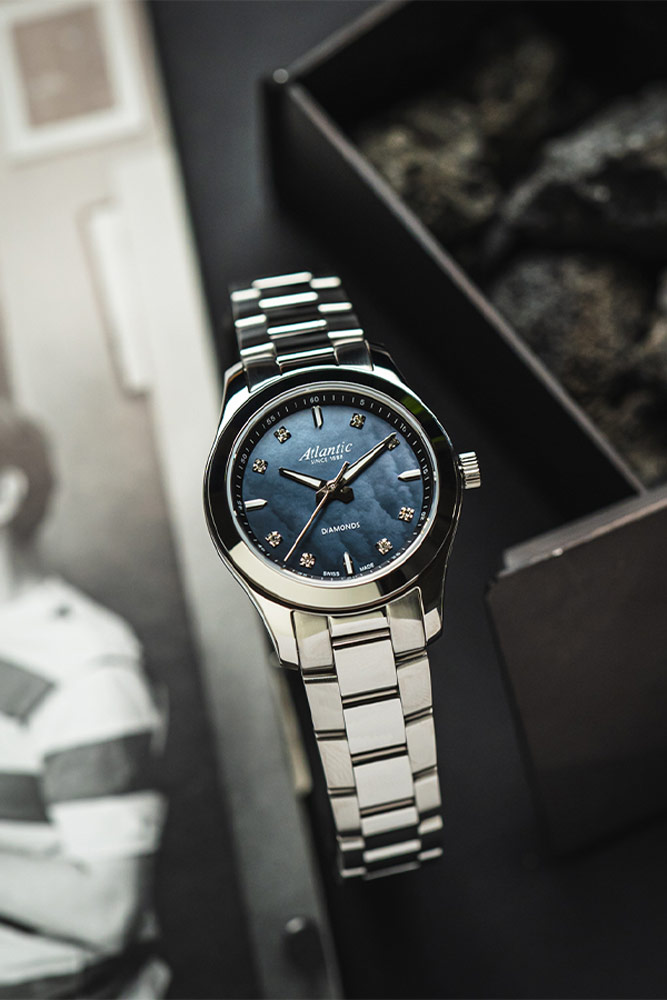Atlantic Seapair Lady je novinkou v rodině elegantních hodinek SEAPAIR, která je tentokrát vyhrazena dámám. Zachoval se její moderní a nadčasový design, díky kterému se stále skvěle hodí pro každou příležitost, jak přes den, tak i večer. Díky nové pobočce Seapair Lady nyní tyto hodinky nabízejí luxusní, šperkový styl díky vzácným materiálům a ladné siluetě.