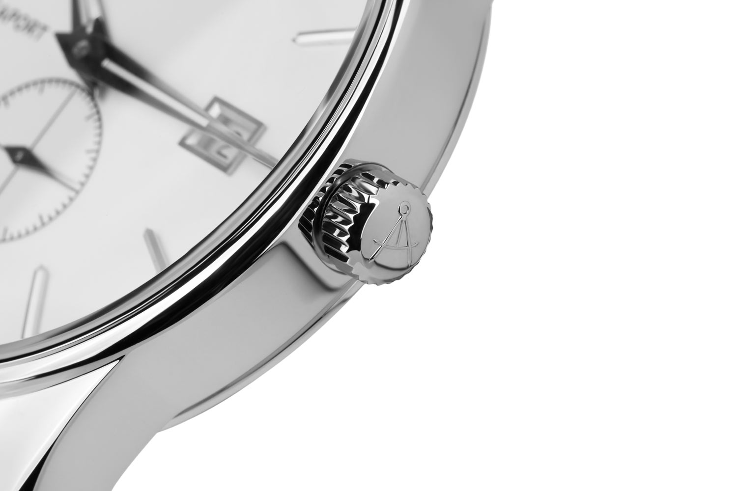 Ruční strojek je rovněž plně mechanický, ale vyžaduje pravidelné natahování pomocí korunky.