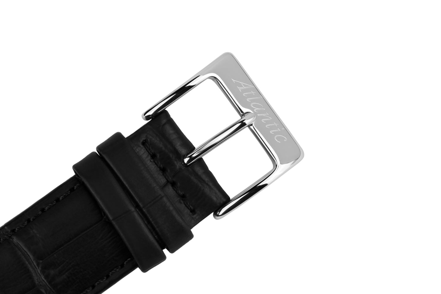 Pánské hodinky Atlantic Seaport 563524151 jsou dostupné ve velikosti 41 mm. Tyto hodinky se vyznačují malou tloušťkou pouzdra, která je pouhých 10 mm. Tyto hodinky lze snadno schovat pod manžetu elegantní nebo sportovní košile. Výrobce své hodinky spároval s měkkým a lehkým řemínkem z přírodní kůže. Černý kožený řemínek se zapíná na klasickou přezku s jehlou.