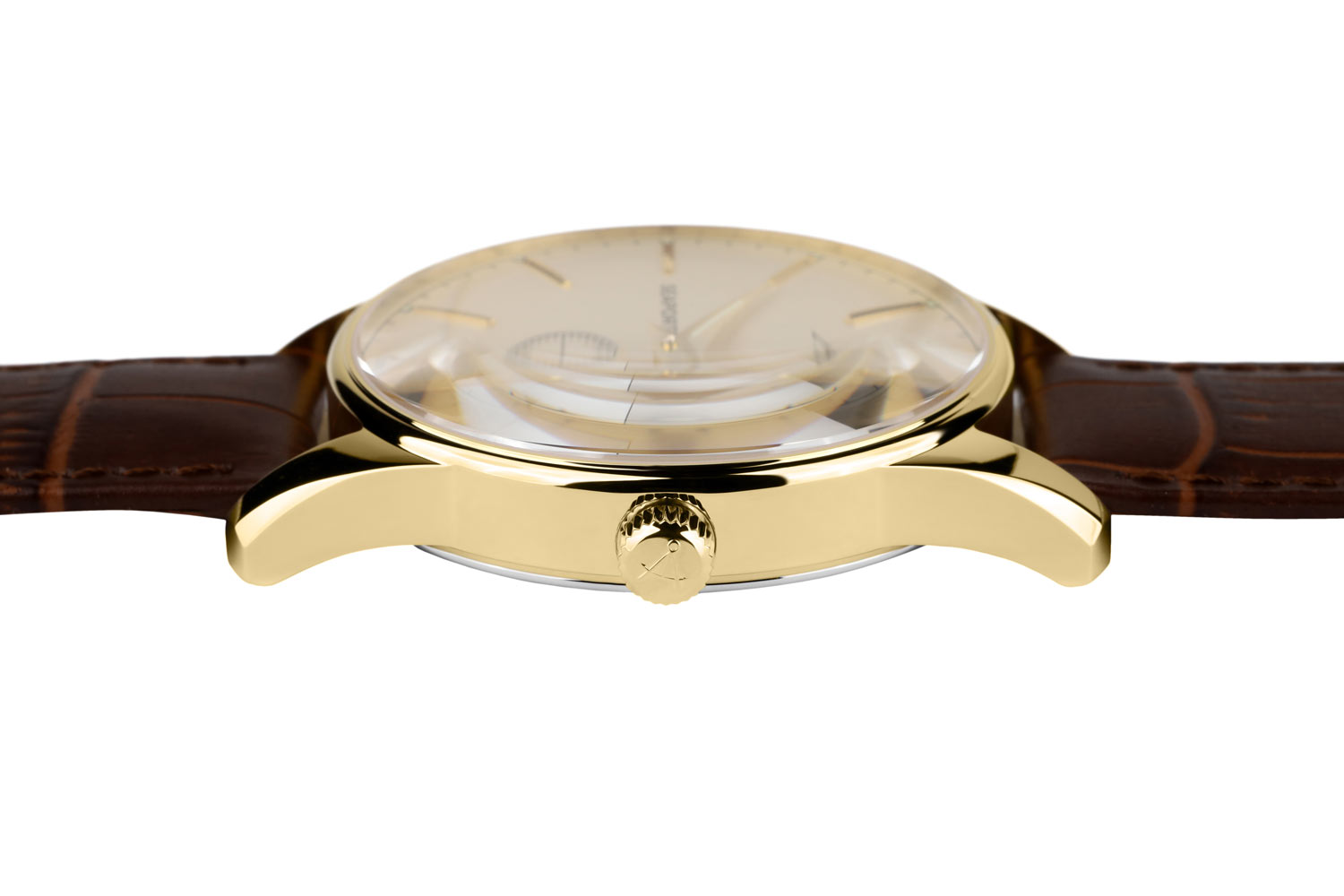 Ruční strojek je rovněž plně mechanický, ale vyžaduje pravidelné natahování pomocí korunky.