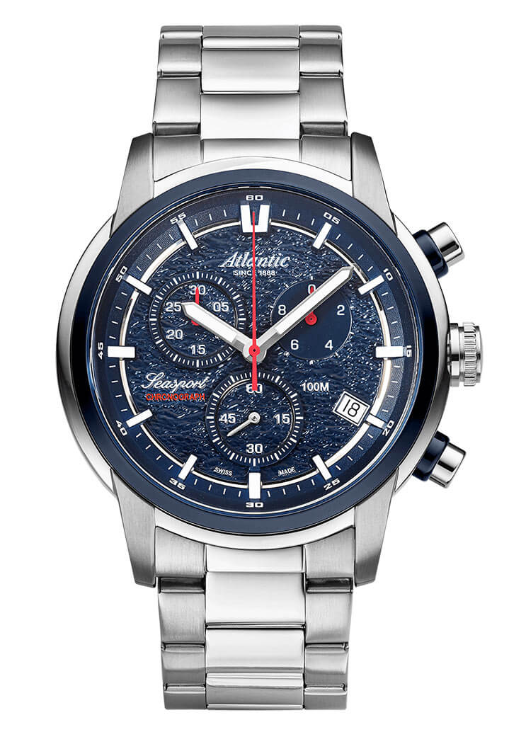 Navržený s důrazem na odolnost a pohodlí při nošení, časoměřič Atlantic je vybaven ocelovým pouzdrem o průměru 46 mm a odpovídajícím náramkem z robustních článků. Safírové sklíčko poskytuje odolnost proti poškrábání, díky čemuž si model udrží estetický vzhled i při intenzivním používání. Vodotěsnost do 100 metrů umožňuje bez obav používat hodinky i při plavání.