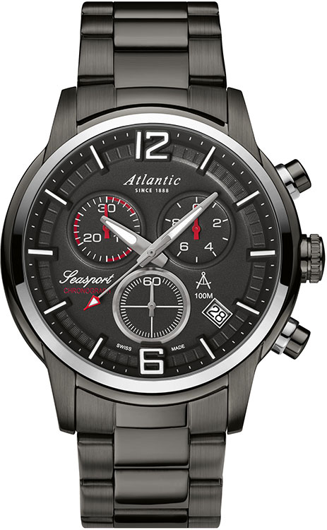 hodinky Atlantic Seasport 87466.46.45 . Sportovní hodinky s chronografem (stopkami) pro aktivní muže. Klasická forma pouzdra, plynule spojená s náramkem, vytváří soudržnou a extrémně odolnou strukturu. Hodinové indexy byly vyrobeny poutavým způsobem a vytvořily originální 3D efekt. Ručičky a všechny hodinové značky jsou vyplněny luminiscenční látkou, která umožňuje odečítat čas v naprosté tmě. Pevný náramek s plnými ocelovými články netahá chlupy na zápěstí, díky čemuž je nošení sportovních hodinek příjemné a pohodlné. Safírové sklo odolné proti poškrábání rozzáří tento model i po mnoha letech. Celé hodinky jsou udržovány v módní černé barvě díky modernímu PVD povlaku odolnému proti oděru.