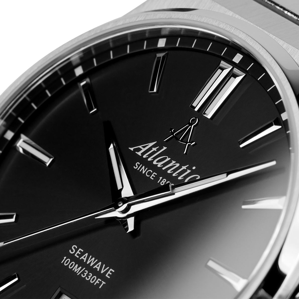 Na přední straně je safírové sklo odolné proti poškrábání. Kryje minimalistický černý ciferník s ostrými ručičkami a velkými indexy s luminiscenční hmotou, která usnadňuje odečítání času ve tmě. Pozici 12 hodin zdobí hrdé logo značky Atlantic s rozpoznatelným znakem v podobě kompasu lodního navigátora. Funkce hodinek Atlantic doplňuje zobrazení data na 6. hodině. Okno se světlým pozadím zobrazuje aktuální den v měsíci. Pod lesklým povrchem číselníku je instalován švýcarský mechanismus Ronda, který zaručuje přesné měření času nezbytné pro dnešní dynamický životní styl. Náramkové hodinky Atlantic budou perfektním doplňkem každého pánského šatníku.