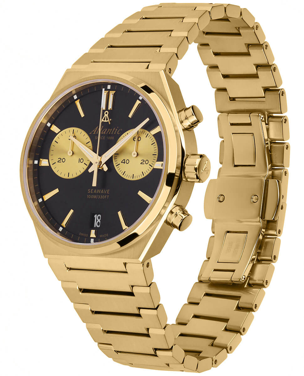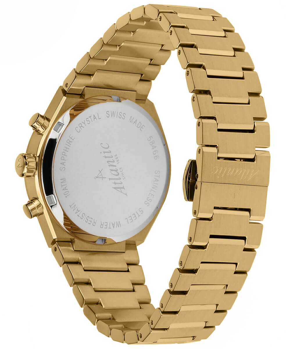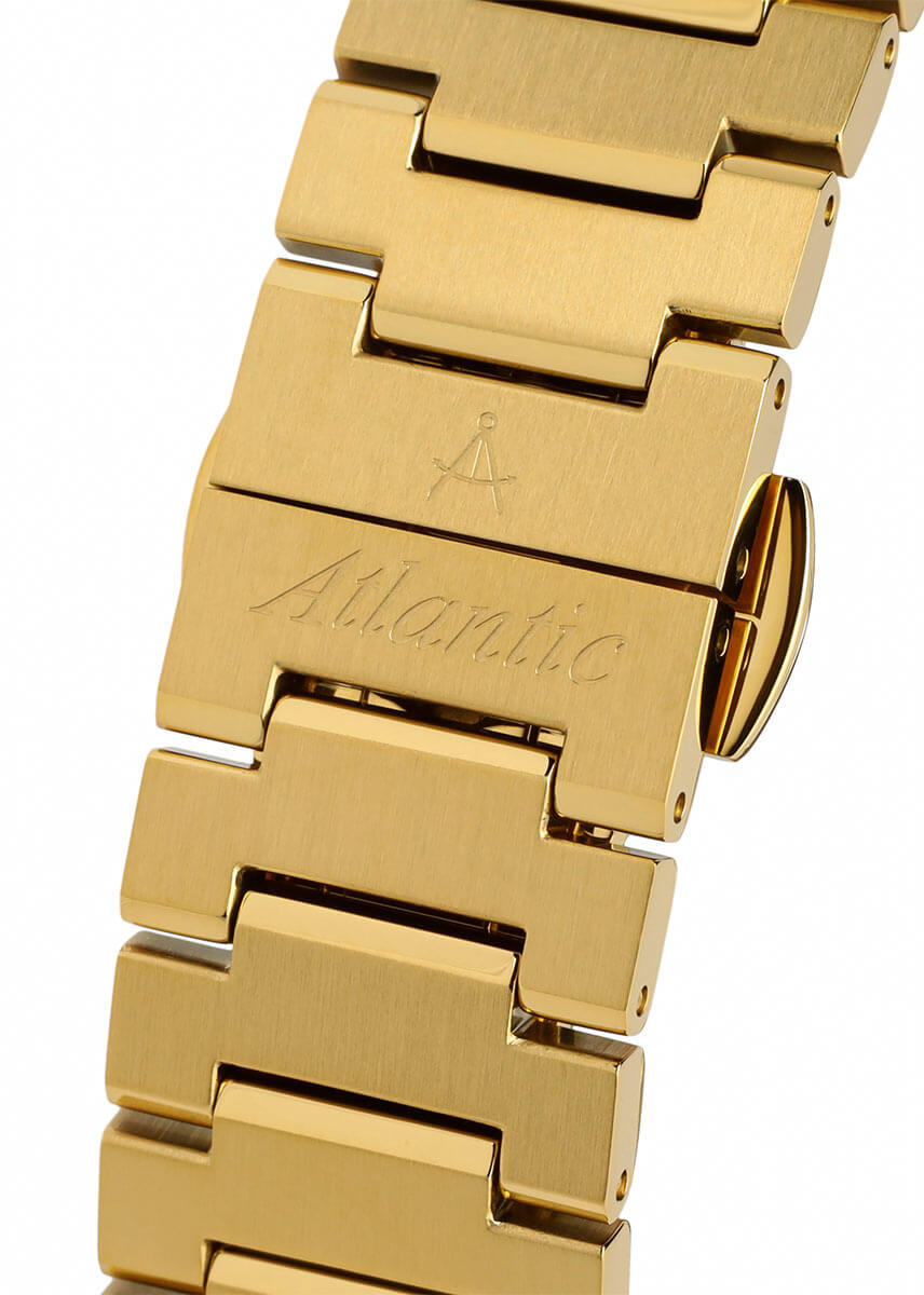 Precizně navržené hodinky Atlantic s velikostí 40 mm jsou ideální volbou pro každý mužský zápěstí. Jejich kompaktní a štíhlé pouzdro zajišťuje nejen pohodlí při nošení, ale také diskrétní umístění pod manžetou košile, což z nich činí ideální hodinky pro formální příležitosti i každodenní nošení. Robustní pouzdro z nerezové oceli ve zlaté barvě s PVD povlakem zajišťuje výjimečnou odolnost a ochranu proti korozi, což se promítá do dlouholeté spolehlivosti. Hodinky se vyznačují vodotěsností až do 100 metrů, díky čemuž je lze bez obav nosit i při plavání. Zadní stranu pouzdra zakončuje šroubovací ocelový dýnko, které zvyšuje odolnost konstrukce a zdůrazňuje vysokou kvalitu zpracování. Model Atlantic je vybaven masivním, pozlaceným náramkem s plochými články, které pohodlně sedí na zápěstí. Motýlková spona zajišťuje bezpečnost nošení a uživatelský komfort, díky čemuž jsou tyto hodinky praktickým a elegantním doplňkem pro muže, kteří dbají na styl a spolehlivost.