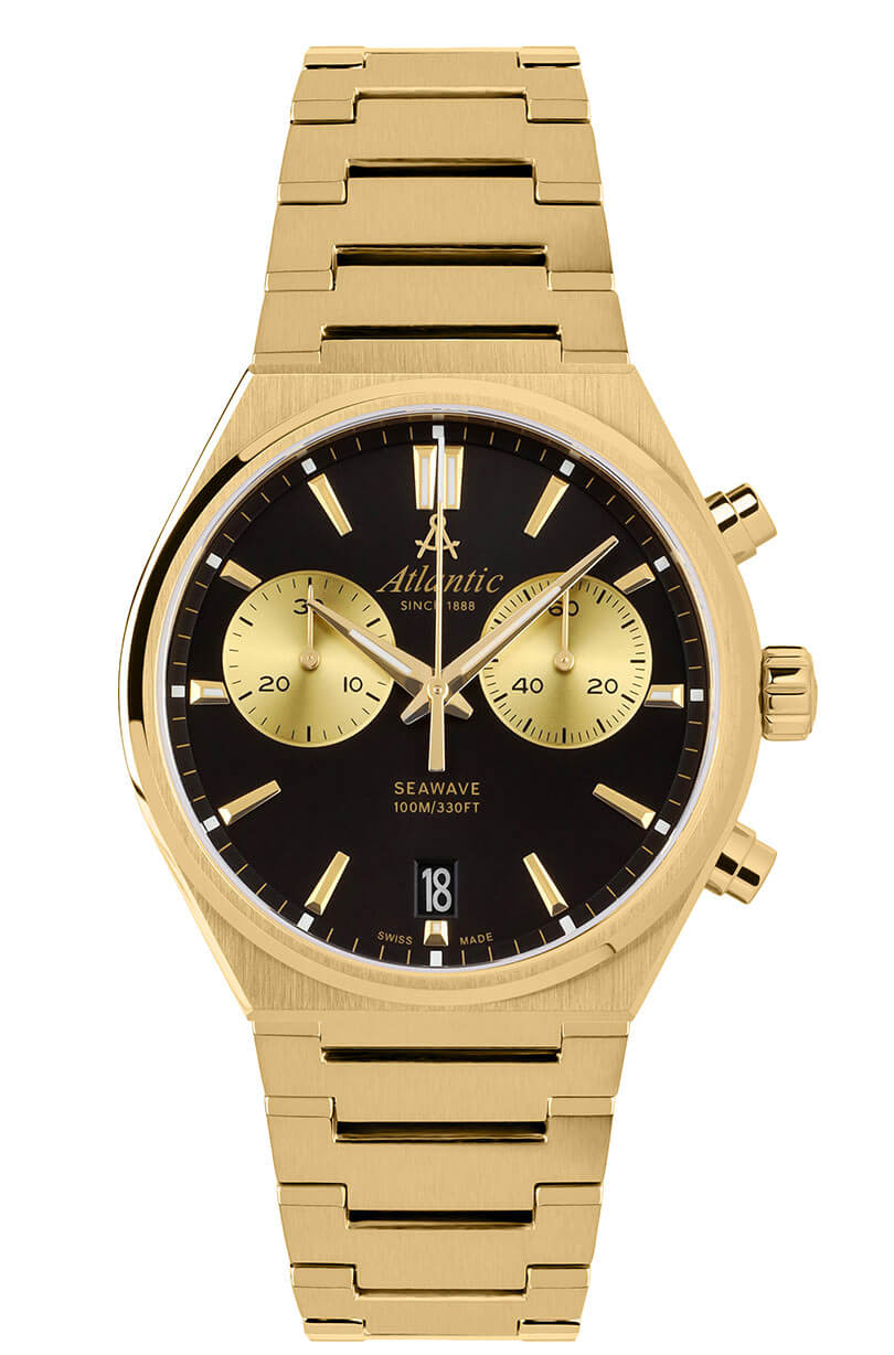 Pozlacené pánské hodinky Atlantic Seawave Chronograph 58466.45.61 z kolekce Seawave Chrono jsou mistrovským spojením kouzla minulých dekád s moderní hodinářskou přesností. Stvořené pro muže, kteří si cení elegantního vzhledu a ducha sportovní soutěživosti, tyto hodinky připomínají ikonický styl 80. let, kombinující jej se současnou sofistikovaností. Štíhlý a aerodynamický design hodinek dokonale ladí s jakýmkoli outfitem, dodávajíc mu charakteristický nadčasový styl. Atlantic Seawave Chrono je nejen zárukou spolehlivosti, ale také prohlášením o třídě a smyslu pro detail, které jej odlišují od ostatních modelů. Ideální pro muže, který hledá doplněk plný elegance a kvality, budou tyto hodinky věrným společníkem na dlouhá léta, zachovávajíc svůj jedinečný styl bez ohledu na měnící se trendy.