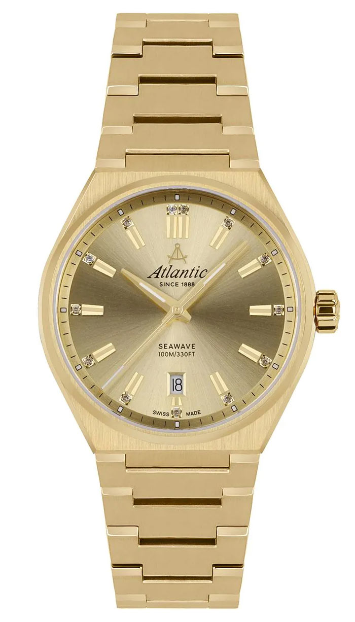 Zlatý ciferník přitahuje pozornost svým leskem, jenž se mění v závislosti na úhlu dopadu světla. Indexy byly ozdobeny třpytivými krystalky, které dodávají kompozici výraznost a šperkařský charakter. Uvnitř pracuje precizní křemenný strojek Ronda Swiss Made – spolehlivý, diskrétní a bezúdržbový. Pozlacené dámské hodinky Atlantic Seawave Lady 393654531 na náramku jsou časoměrem, který spojuje praktičnost s estetikou, vytvořeným pro ženy sebevědomé ve své eleganci – bez ohledu na příležitost.