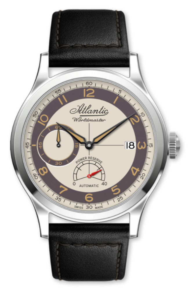 Na přední straně hodinek je průhledné safírové sklíčko , které je extrémně těžké poškrábat. Kryje béžový ciferník se štíhlými ručičkami a arabskými indexy. Ciferník byl obohacen o již dříve zmíněný subciferník rezervy chodu na šesté hodině a vteřinovou ručku na deváté hodině. Ve 3 hodiny je malé datumové okénko. Označuje aktuální den v měsíci. Design ciferníku je čitelný a elegantní. Umožní vám na první pohled téměř okamžitě odečíst čas. Značka Atlantic se postarala o snadné čtení aktuální doby i v naprosté tmě. Na ručičky a indexy je umístěna speciální svítivá luminiscence.