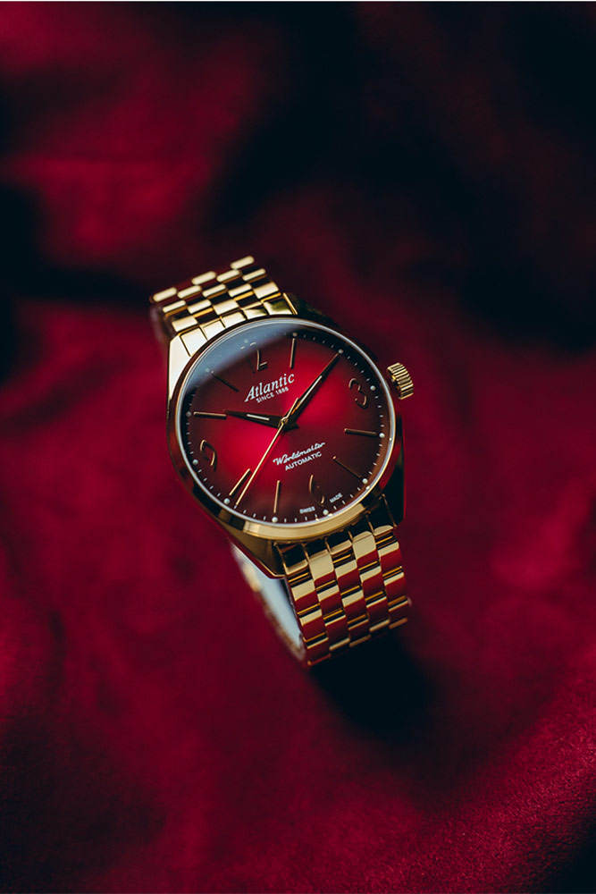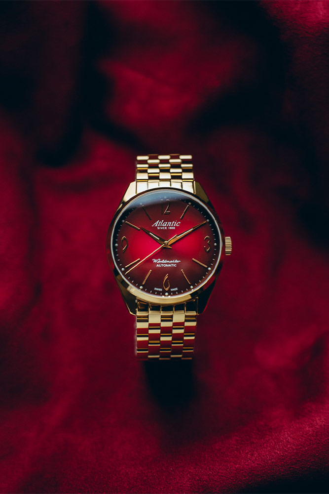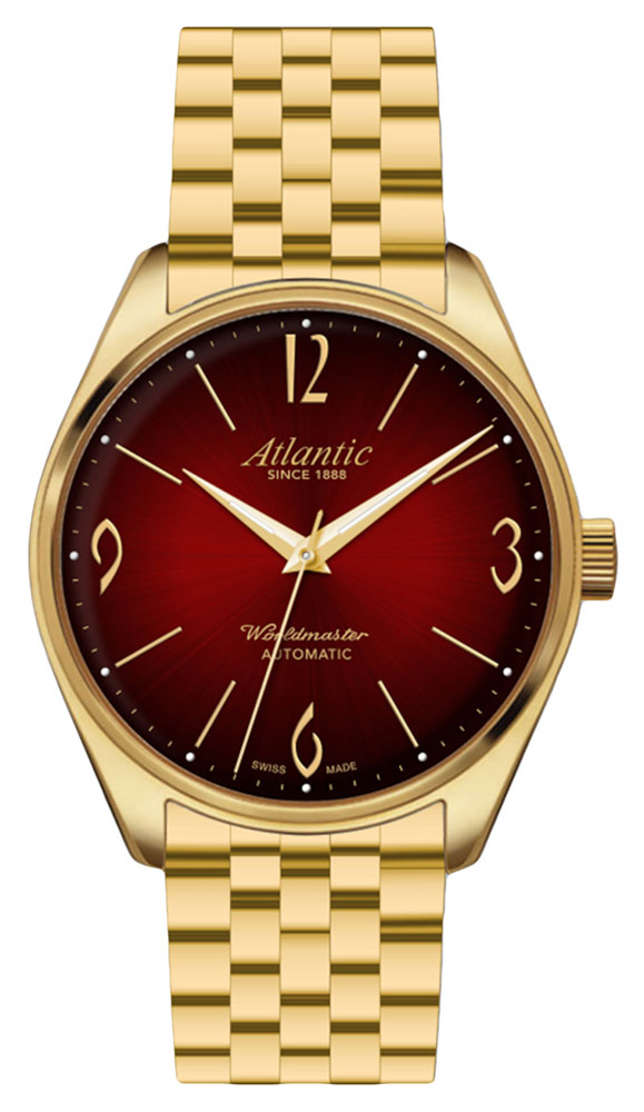 Pozlacené náramkové hodinky Atlantic Worldmaster Art Deco Automatic 51752.45.99GM svým elegantním a tradičním designem vracejí styl 50. let zpět do moderní doby Atlantic Worldmaster Art-Déco se prezentuje jako dokonalý a vždy spolehlivý společník. Krásný přechodový červený a černý ciferník je založen na Originním Worldmasteru, který byl poprvé uveden na trh v roce 1955.
