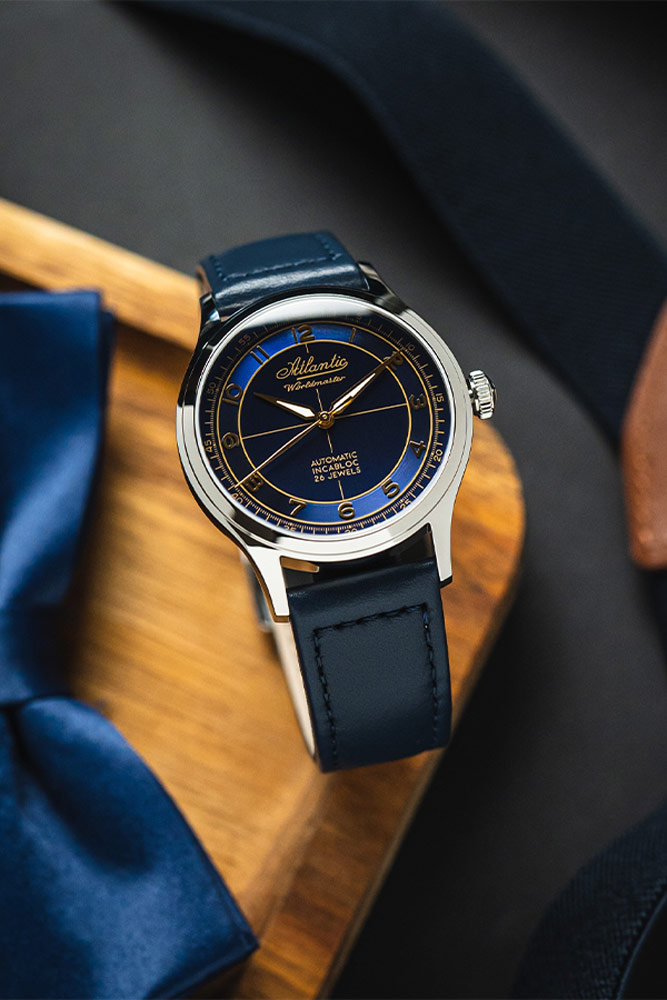 Atlantic Worldmaster Automatic Incabloc jsou luxusní švýcarské automatické hodinky ze skvělé kolekce WORLDMASTER . Kolekce, která je vlajkovou lodí, nejbohatší a téměř nejstarší rodinou automatických hodinek Atlantic. Elegantní, automatické hodinky Atlantic Automatic Incabloc jsou uměleckým dílem s tradičním retro charakterem a zároveň důstojným zástupcem švýcarské kvality. Uvnitř jeho 39mm pouzdra z leštěné nerezové oceli je vysoce spolehlivý automatický natahovací mechanický Machineek s luxusním systémem Incabloc.