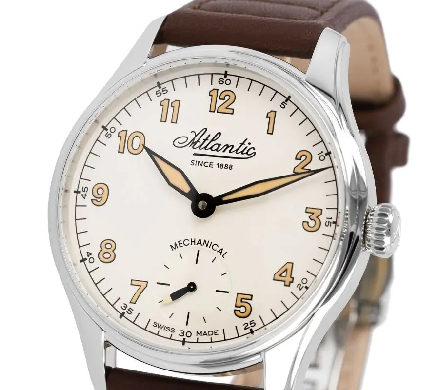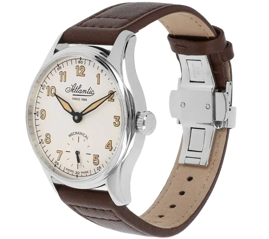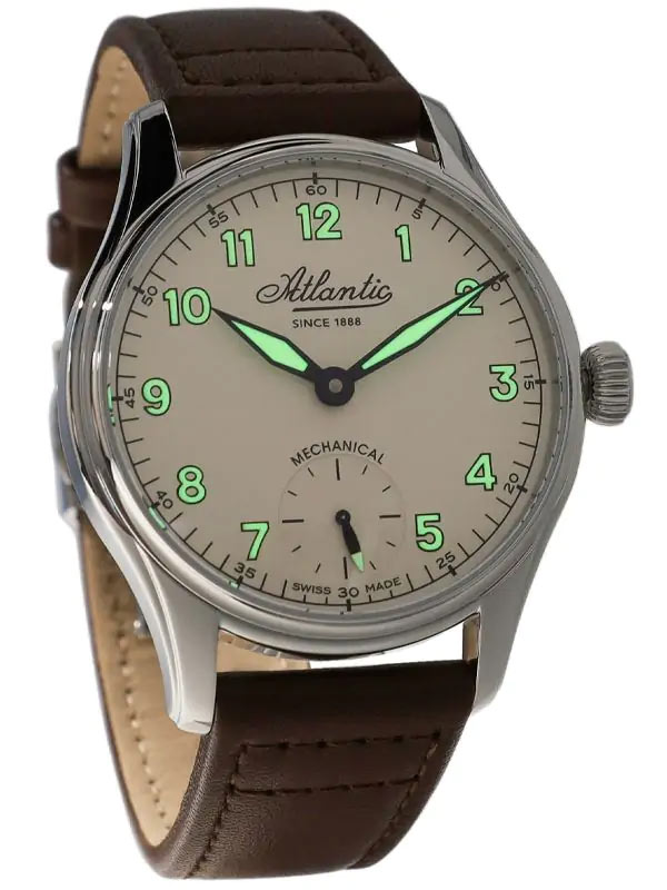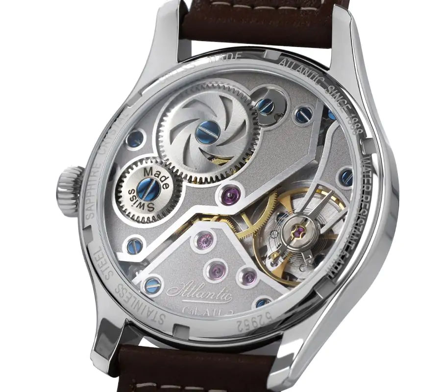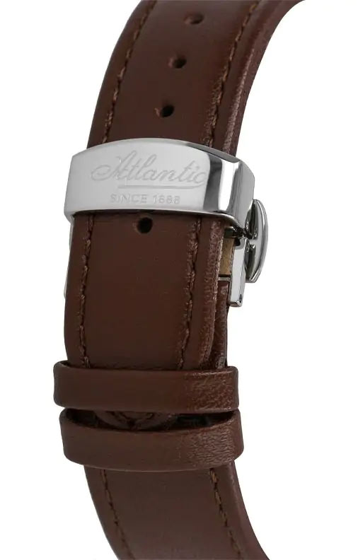 Vlastní hodinky Atlantic 52952.41.93 jsou umístěny v odolném pouzdru z nerezové oceli s optimálním průměrem 42 mm . Jeho rub je prosklený, což umožňuje jeho nositeli neustále fascinovat pohledem na „živou“, švýcarskou mechaniku, která je nejnovějším mistrovským dílem atlantické hodinářské výroby in-house. Výše uvedená verze pánských mechanických hodinek Atlantic z nové řady Worldmaster Manufacture Mechanical představuje hnědé a béžové barevné schéma ideální pro fanoušky klasických retro hodinek.
