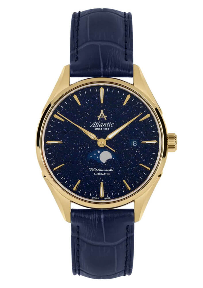 Pánské automatické hodinky Atlantic Worldmaster Nightsky Moonphase 52783.45.91 jsou elegantním modelem pro muže, který od svého časomíru očekává nejen dokonalou přesnost, ale i výjimečnou estetiku. Švýcarský strojek, pozlacené pouzdro a číselník inspirovaný noční oblohou vytvářejí kompozici, která oslovuje ty, kdo si cení vytříbených detailů, symboliky a moderní podoby klasiky. Jsou to hodinky, které se stejně dobře uplatní při večerních příležitostech jako během dne – na schůzce, v divadle či při slavnostní události.