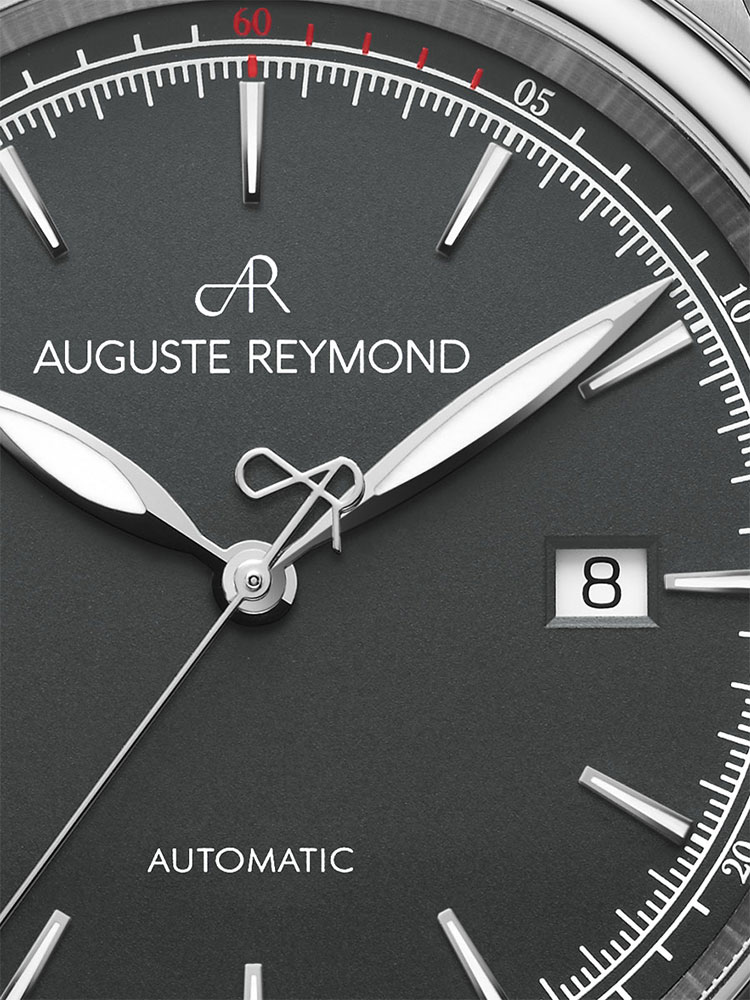 Společnost AR je známá především udržováním hodinářské tradice již 125 let. Auguste Reymond jako tradiční značka, která myslí dopředu, stále uplatňuje svou filozofii výroby vysoce kvalitních hodinek, které staví vedle sebe historii, tradici a autentičnost. Respektující minulost a zároveň utvářející vlastní budoucnost, značka zaujme svými kreativními návrhy a individuálním přístupem k měření času. Její díla se vyznačují současnou, městskou estetikou a tajemnými detaily. Pozornost rozhodně upoutá broušená povrchová úprava vršku a boků pouzdra, leštěné rohy a hrany, vroubkovaná korunka s logem AR, listové ručky se Super-LumiNova®, protizávaží sekundová ruka s prolamovanou verzí loga značky. Posledně jmenovaný detail je také jedinečný, protože v závislosti na poloze sekundová ručička zobrazuje buď logo, nebo symbol nekonečna.