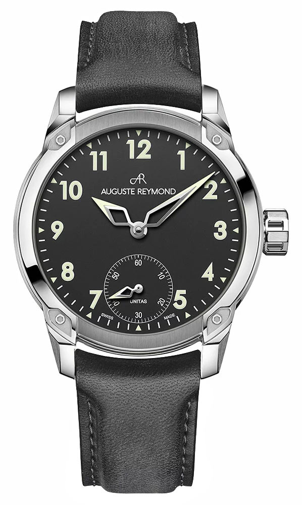 Ocelové pouzdro Origin Unitas je harmonicky vyvážené. Jeho prolamovaná struktura má moderní linie inspirované posvátnou geometrií. To v kombinaci s nejvyšší kvalitou nerezové oceli a perfektní povrchovou úpravou poskytuje nový organoleptický zážitek. Průměr pouzdra byl přizpůsoben aktuální době a činí 44 milimetrů . Půvab dodávají ručky s charakteristickým a inovativním tvarem (připomínajícím kompas), jejichž okraje jsou pokryty luminiscenční hmotou, která září zeleně. Na černém ciferníku najdeme kromě arabských číslic z fluorescenční hmoty malou vteřinovou ručku na šesté hodině. Zobrazovací systém je chráněn safírovým sklem s antireflexní vrstvou na obou stranách. Tepujícím srdcem Auguste Reymond Origin Unitas je spolehlivý a ručně natahovaný Machineek Unitas s rezervou chodu 44 hodin . Jde o celosvětově uznávané hnutí, které v minulosti přispělo k pověsti značky Auguste Reymond. Hodinky jsou k dispozici na koženém řemínku s patentovaným zapínáním na patentku.