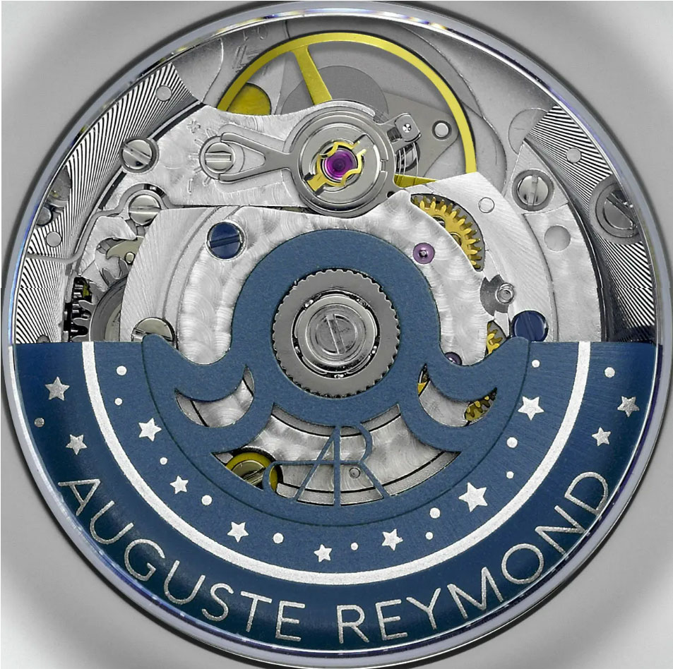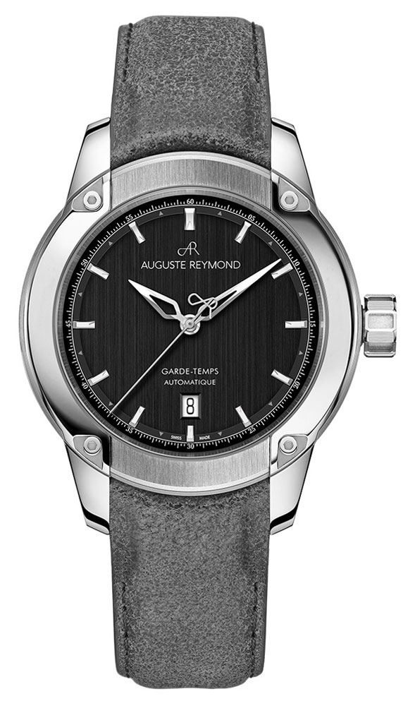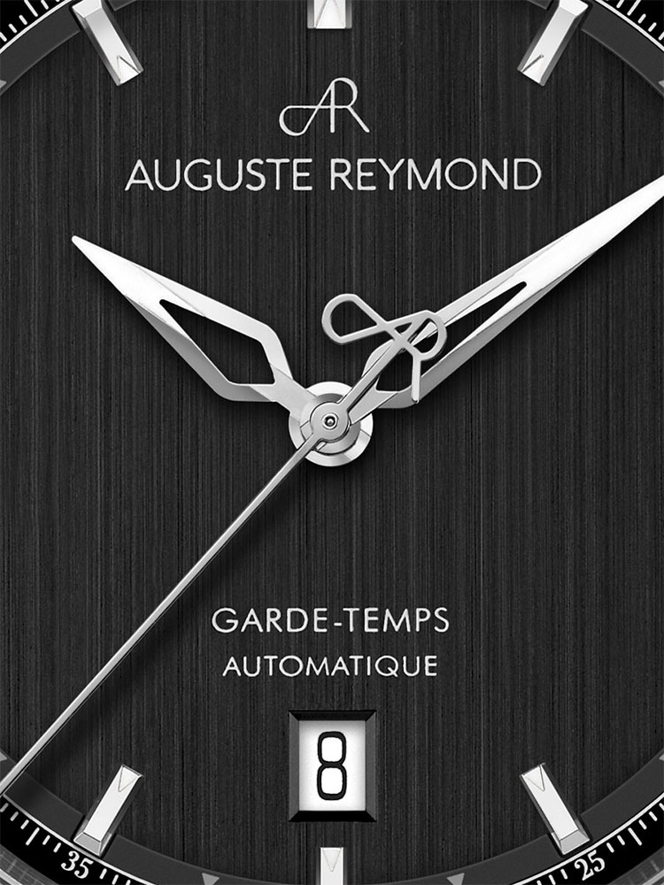 Kromě inovativního designu hraje důležitou roli standard dokončovacích detailů. Design prolamované krajky odkazuje na hodinová kolečka a historické měřicí příMachinee. Tento detail dodává vnějšímu designu automatických hodinek Auguste Reymond Garde-Temps Automatique mechanický nádech. Mezi složité funkce patří kartáčované lemy na korunových řezech a důlcích. Logo značky je umístěno ve středu ciferníku a nad pozicí 6 hodin je umístěno datumové okénko. Tvar indikací by měl připomínat šipky kompasu. Výrazným akcentem je v jejich případě Super-LumiNova® - luminiscenční látka. Protiváhu sekundové ručičky zatraktivňuje až prolamovaná verze loga značky. Díky specifičnosti svého designu a v závislosti na poloze sekundová ručička zobrazuje logo nebo symbol nekonečna. Tyto elegantní pánské hodinky z kolekce Unity jsou vybaveny automatickým mechanickým Machinekem s rezervou chodu 42 hodin , který se vyznačuje modrým oscilačním závažím potaženým PVD vrstvou.