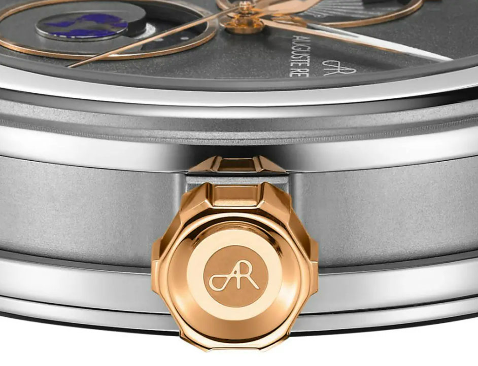 Kromě inovativního designu hraje důležitou roli standard dokončovacích detailů. Design prolamování a pozlacené krajky odkazuje na hodinová kolečka a historické měřicí příMachinee. Tento detail dodává vnějšímu designu automatických hodinek Auguste Reymond Garde-Temps Automatique mechanický nádech. Mezi složité funkce patří kartáčované lemy na korunových řezech a důlcích. Ciferník obsahuje logo značky ve středu a okénko s datem nad pozicí 6 hodin. Tvar pozlacených označení má připomínat šipky kompasu. Výrazným akcentem je v jejich případě Super-LumiNova® - luminiscenční látka. Protiváhu sekundové ručičky zatraktivňuje až prolamovaná verze loga značky. Díky specifičnosti svého designu a v závislosti na poloze sekundová ručička zobrazuje logo nebo symbol nekonečna. Tyto elegantní pánské hodinky z kolekce Unity jsou vybaveny automatickým mechanickým Machinekem s rezervou chodu 42 hodin , který se vyznačuje modrým oscilačním závažím potaženým PVD vrstvou.