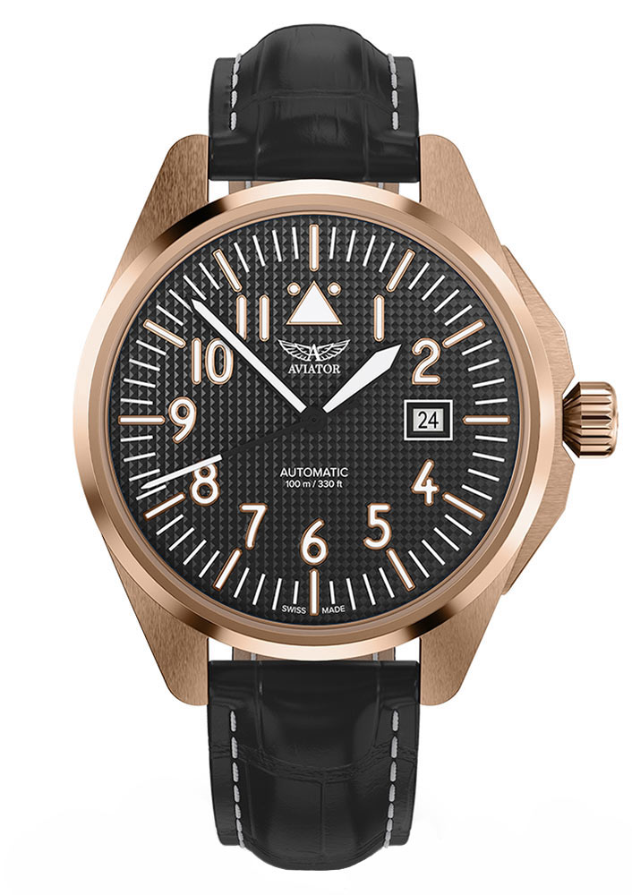Tyto hodinky inspirované duchem klasických leteckých hodinek zaujmou svým minimalistickým černým ciferníkem, jehož jedinečná trojrozměrná textura jim dodává jedinečný charakter. Široké aplikované rejstříky nejen zdůrazňují estetiku, ale také zajišťují vynikající čitelnost i v těch nejtěžších podmínkách. Aktuální čas ukazují velké protáhlé ručičky a den v měsíci ukazuje datumovka, jejíž okénko je umístěno na třetí hodině. Výrobce si dal záležet na tom, aby údaje z ciferníku byly dobře čitelné i za horšího osvětlení. Na ručičky a indexy se aplikuje Swiss Super-LumiNova® luminiscence. Celý ciferník je krytý safírovým sklem odolným proti poškrábání s antireflexní vrstvou, která odráží světlo.