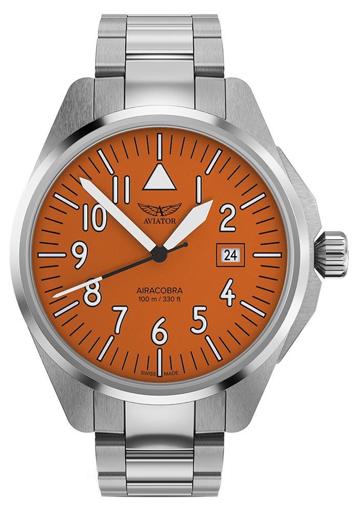 Oranžový ciferník hodinek v leteckém stylu má bílé ručky a indexy potažené luminiscenčním materiálem Super-LumiNova®, zaručující perfektní čitelnost v kteroukoli denní i noční dobu. Funkčnost hodinek podtrhuje zobrazení data na třetí hodině, což usnadňuje sledování aktuálního data. Celé je chráněno safírovým sklem odolným proti poškrábání s antireflexní vrstvou, která zajišťuje čistotu čtení i v obtížných světelných podmínkách.