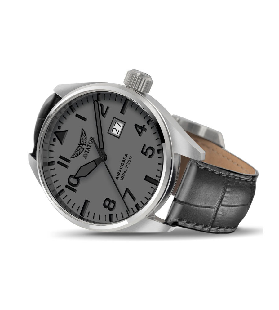 Aviator Airacobra P42 V12201504 je kulaté broušené pouzdro z nerezové oceli 316L v pánské velikosti 42 mm . Pouzdro je utěsněno na 100 metrů, což vám umožňuje plavat s hodinkami na zápěstí. Na pravé straně pouzdra je šroubovací korunka, velká a snadno použitelná. Na očka pouzdra je připevněn elegantní šedý kožený řemínek s exotickým vzorem a zapínáním na přezku. Přezka je vyrobena tak, že odkazuje na aerodynamická letadla. Výrazný šedý ciferník chrání safírové sklíčko vysoce odolné proti poškrábání . Na ciferníku jsou kontrastní indexy smíchané s číslicemi a ručičky pokryté svítícím luma, což umožňuje snadné odečítání času i ve tmě. Na 3 hodiny umístil výrobce datumové okno s aktuálním dnem v měsíci. Celý číselník je navržen v leteckém stylu. Hodinky bijí quartzové srdce napájené baterií - ETA F06.161 je švýcarský Machineek, který zajistí přesné měření času. Aviator Airacobra bude skvělým doplňkem každého pánského šatníku. Hodinky v módním stylu a barvách se budou líbit k mnoha outfitům - elegantním i každodenním.