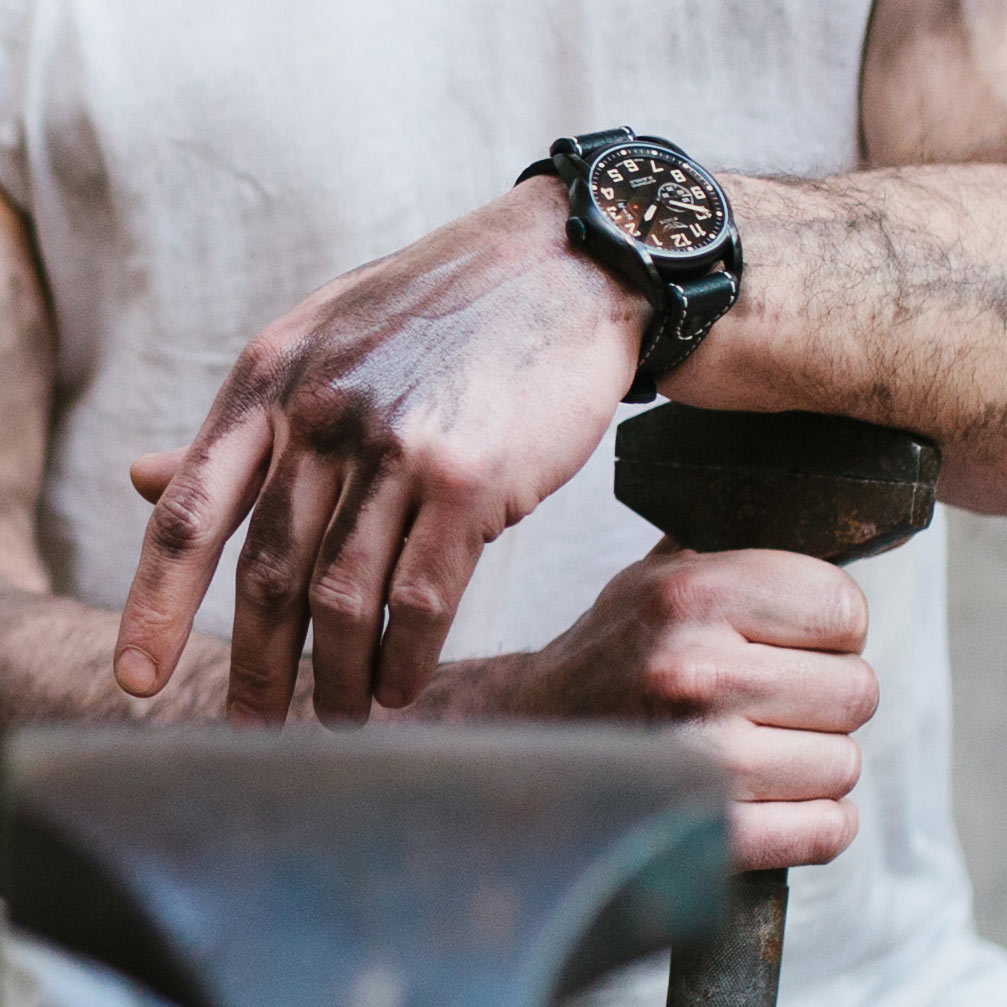 Černý ciferník chrání safírové sklíčko vysoce odolné proti poškrábání s antireflexní vrstvou. Ručičky a hroty nad čísly jsou vybaveny svítící lumou, která vám pomůže odečíst aktuální čas v úplné tmě. Ve 3 hodiny je rozšířené datumové okno, které ukazuje 3 pozice dne v měsíci. Na 9. hodině je vyměněn subciferník vteřinové ručky. Ciferník je navržen v klasickém, čitelném stylu. Jediným pohledem vás hodinky vrátí do počátků letectví. Prezentovaný model je perfektním doplňkem pánského šatníku. Řemínek se bez problémů hodí k elegantním botám nebo pásku od kalhot.