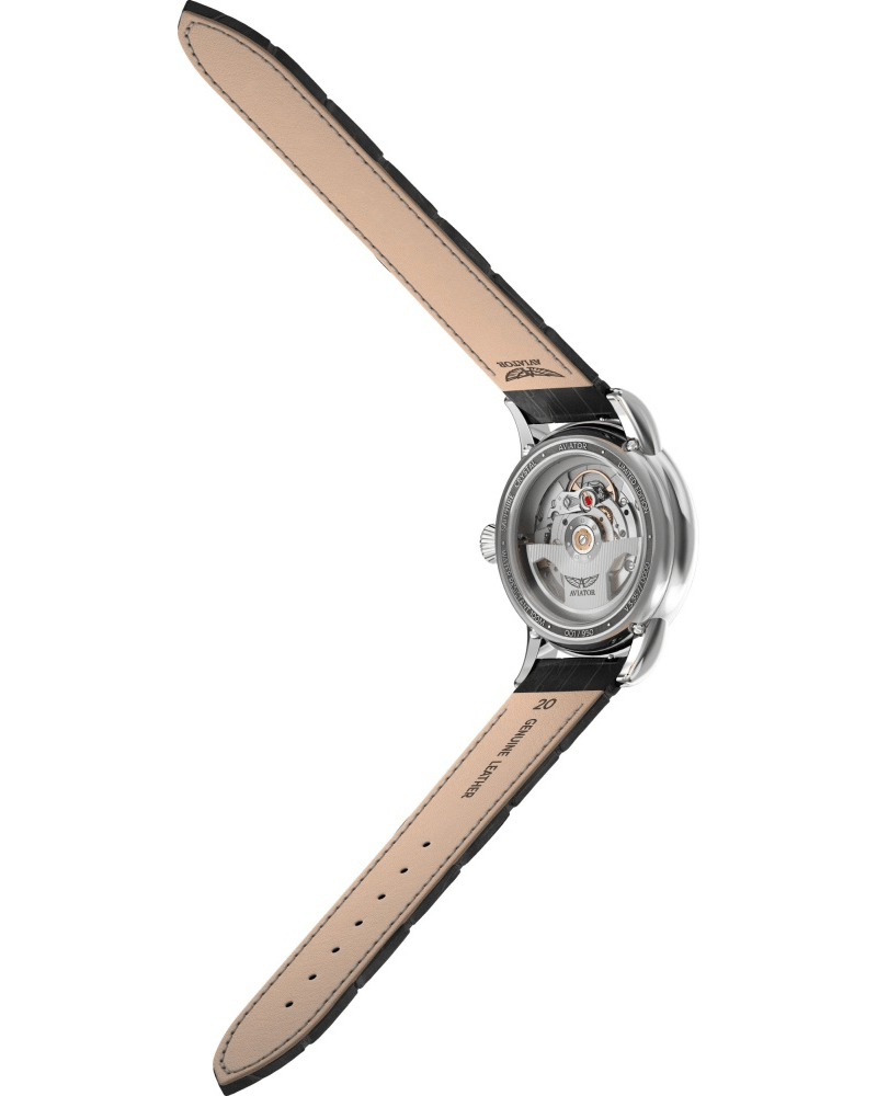 Srdcem těchto hodinek je nejnovější kalibr AV-1000 vyvinutý společností AVIATOR. Vychází z nejznámějšího švýcarského mechanického Machineku Sellita SW 240-1. Kalibr AV-1000 byl vyroben kombinací pokročilé technologie a estetiky. S funkčností v jádru tento pohyb zahrnuje ukazatele dne v týdnu a data. Systém Incabloc chrání mechanismus proti otřesům a nárazům. Mezitím se nadrozměrný a nádherně zpracovaný rotor hladce přizpůsobí designu číselníku, aby si zachoval styl Art Deco na přední i zadní straně hodinek.