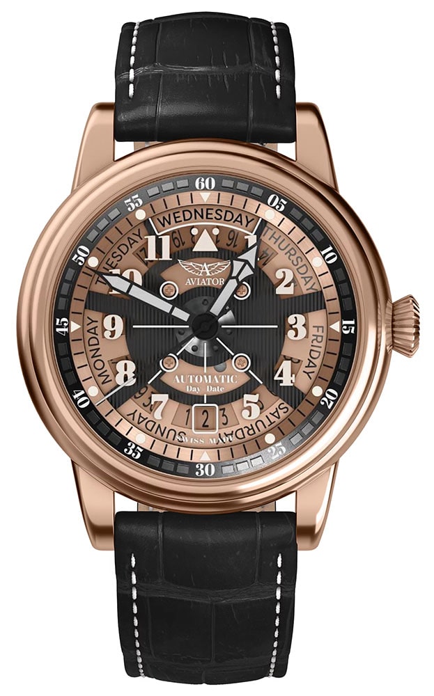 Limitované pánské hodinky Aviator Douglas Day-Date Meca-41 V.3.36.2.289.4. Současné pilotní hodinky s inovativním designem a funkcí pilotního příMachinee. Vznikly z vášně k hodinářství a zároveň z lásky k letectví.