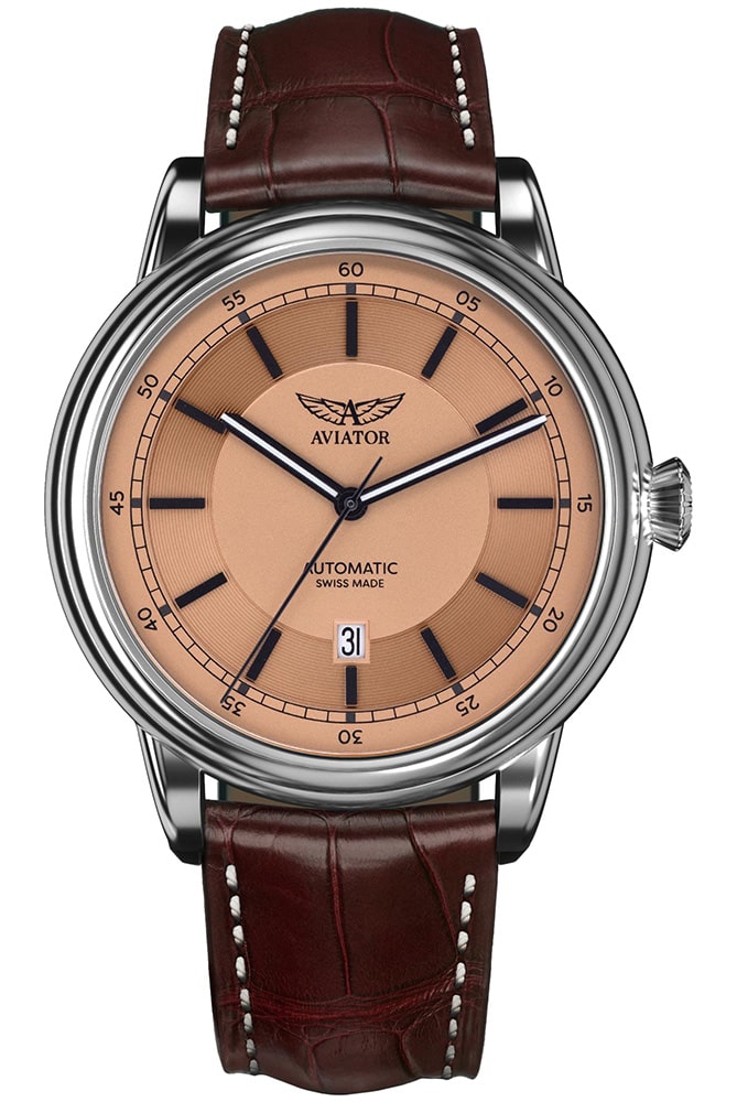 Limitované hodinky Aviator Douglas DC-3 V.3.32.0.244.4 inspirované revolučním letounem Douglas DC-3. Toto letadlo přepravovalo cestující první třídy a ukázalo se, že je klíčové pro zlatý věk letectví. Pánské hodinky Aviator na hnědém řemínku, které kombinují funkčnost a sofistikovanost špičkového cestování s jednoduchým designem ve stylu Art Deco, vzdávají hold luxusnímu cestování a jednomu z největších letadel historie.