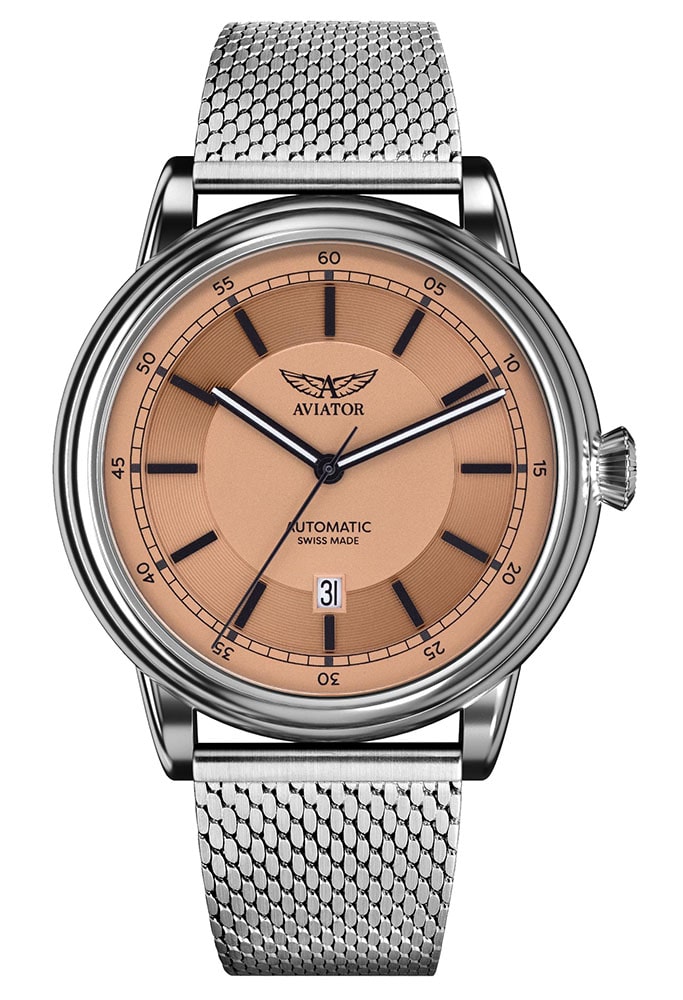 Limitované hodinky Aviator Douglas DC-3 V.3.32.0.244.5 inspirované revolučním letounem Douglas DC-3. Toto letadlo přepravovalo cestující první třídy a ukázalo se, že je klíčové pro zlatý věk letectví. Stříbrné náramkové hodinky Aviator, které kombinují funkčnost a sofistikovanost špičkového cestování s jednoduchým designem ve stylu Art Deco, vzdávají hold luxusnímu cestování a jednomu z největších letadel historie.