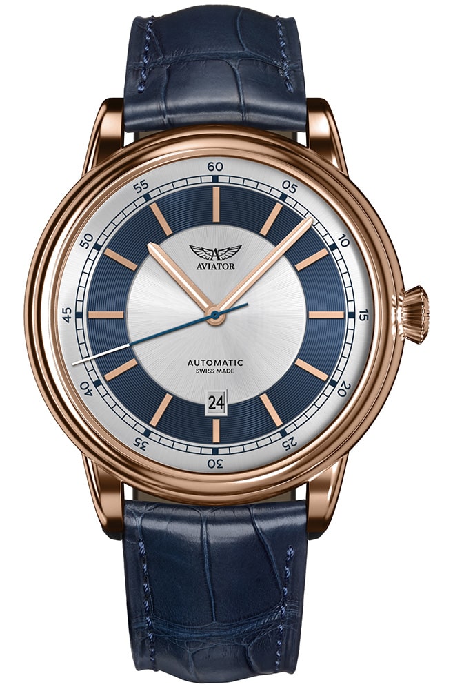Limitované hodinky Aviator Douglas DC-3 V.3.32.2.270.4 inspirované revolučním letounem Douglas DC-3. Toto letadlo přepravovalo cestující první třídy a ukázalo se, že je klíčové pro zlatý věk letectví. Pánské hodinky Aviator na modrém řemínku, které kombinují funkčnost a sofistikovanost špičkového cestování s jednoduchým designem ve stylu Art Deco, vzdávají hold luxusnímu cestování a jednomu z největších letadel historie.