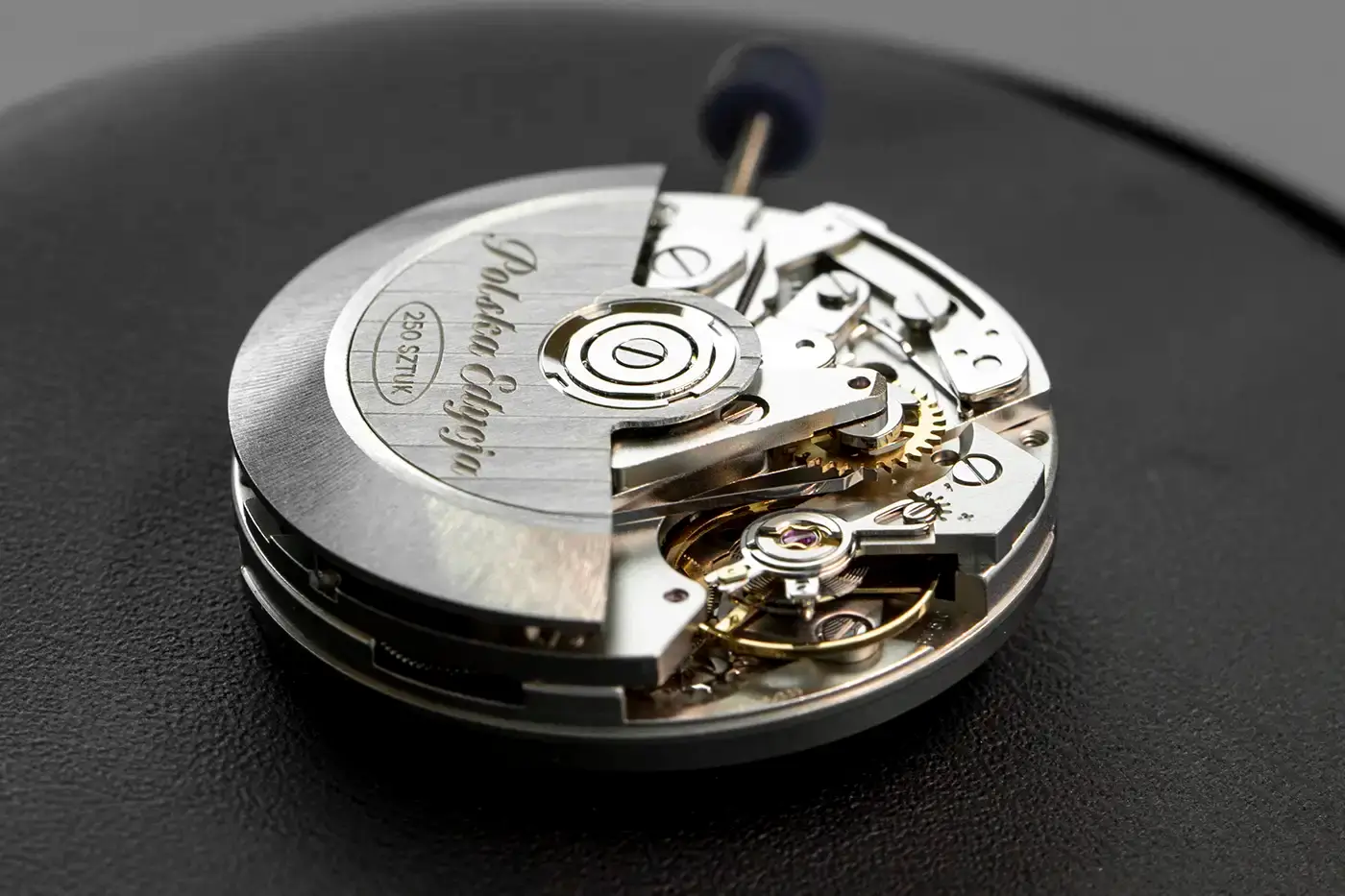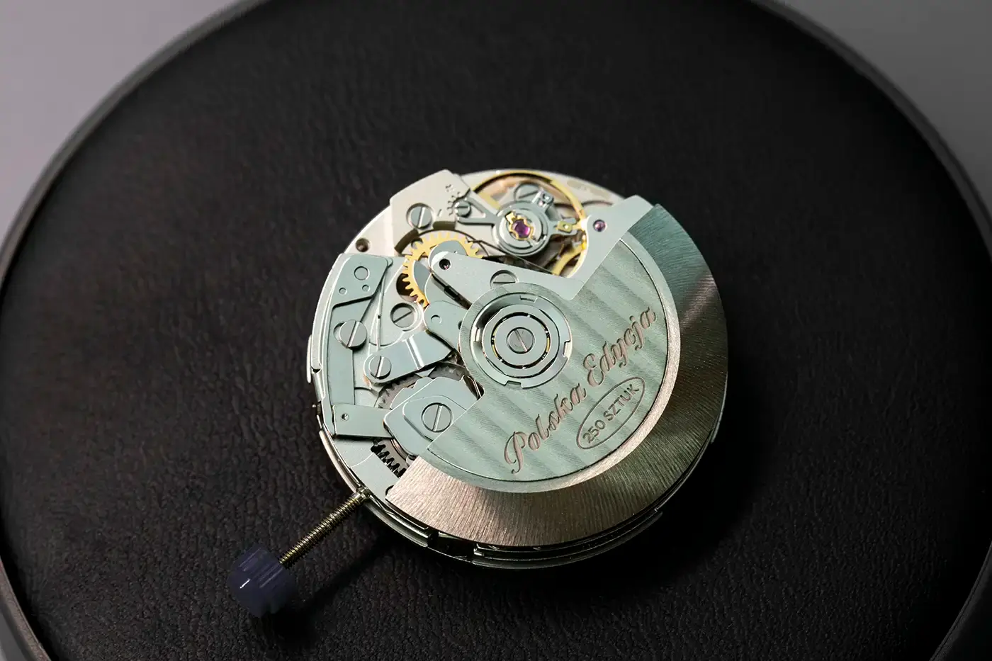 Elegantní letecké hodinky Aviator Polska Edycja se vyznačují také pokročilým mechanismem. Pohání je švýcarský kalibr Sellita SW510 BH a s automatickým nátahem, který nabízí spolehlivou přesnost díky frekvenci 28 800 kmitů za hodinu a působivé rezervě chodu až přibližně 62 hodin. Mechanismus je zdoben rotorem s gravírováním „Polska Edycja“ a číslem limitované série, která zahrnuje pouhých 250 kusů. Výjimečnost automatických hodinek pro pilota Heritage Chronograph Trimeter Swiss Made podtrhuje také personalizovaný zadní kryt, na kterém jsou umístěny polské nápisy – detaily, které přitahují pozornost a dodávají hodinkám hlubší význam. Hodinky jsou vybaveny elegantním modrým řemínkem z přírodní krokodýlí kůže, zakončeným pohodlnou a bezpečnou sponou se dvěma tlačítky.