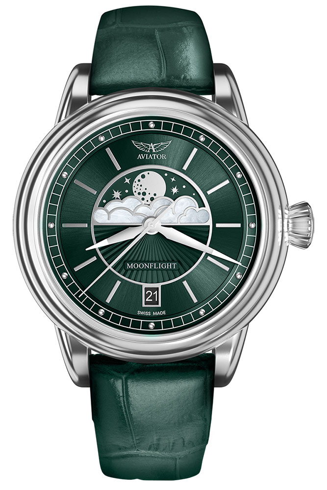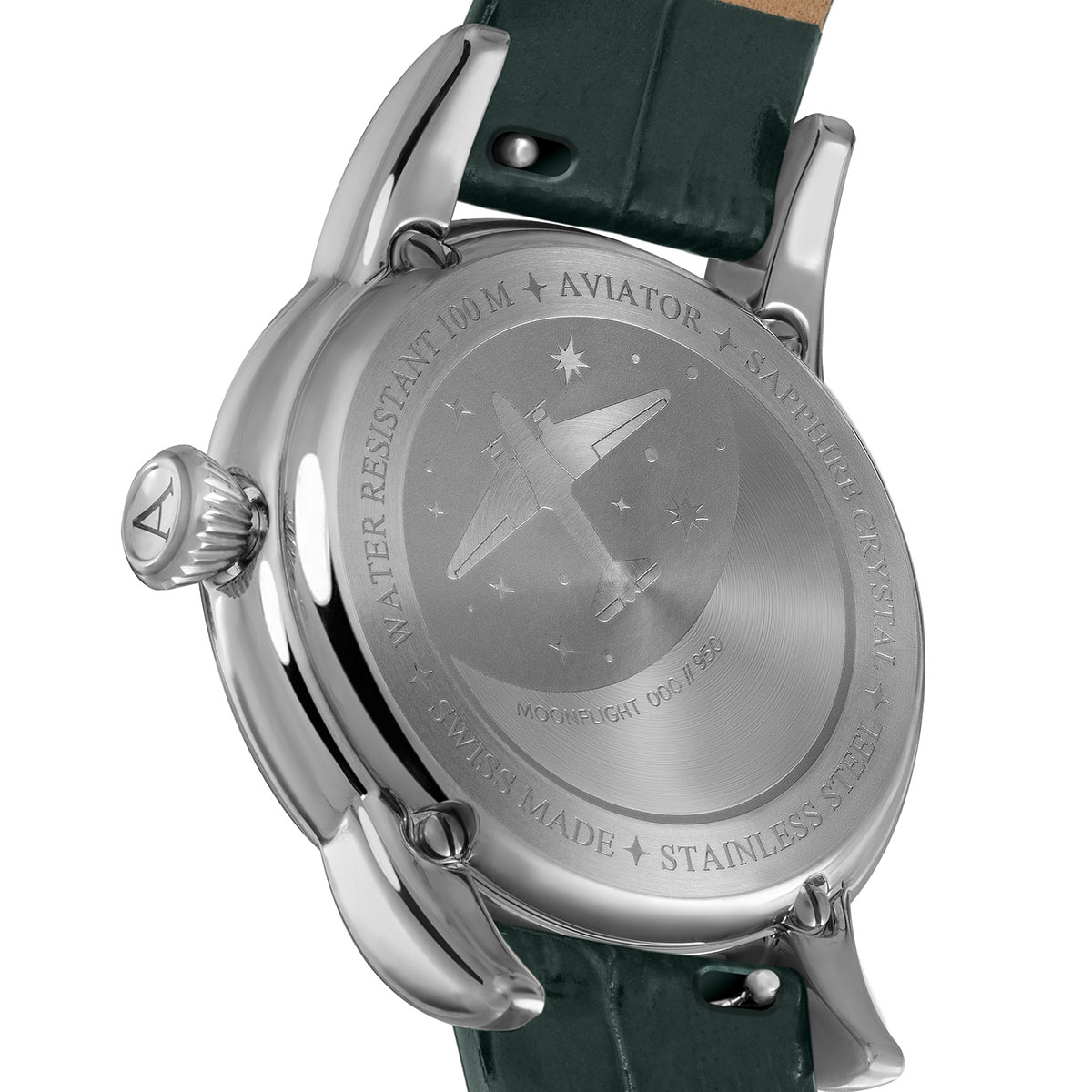 Ve 30. letech 20. století poskytoval každý let legendárního letadla Douglas DC-3 atmosféru elegance a luxusu, která se v dnešních vysokorychlostních komerčních letech nenachází. V každém aspektu dal Douglas DC-3 světu lepší pohled na cestování a definoval tak zlatý věk letectví – dámské hodinky Aviator V.1.33.0.262.4 z kolekce Moonflight jsou odkazem na tyto časy a zážitky.