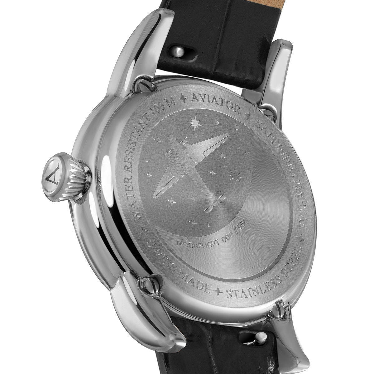Ve 30. letech 20. století poskytoval každý let legendárního letadla Douglas DC-3 atmosféru elegance a luxusu, která se v dnešních vysokorychlostních komerčních letech nenachází. V každém aspektu dal Douglas DC-3 světu lepší pohled na cestování a definoval tak zlatý věk letectví – dámské hodinky Aviator V.1.33.0.252.4 z kolekce Moonflight jsou odkazem na tyto časy a zážitky.