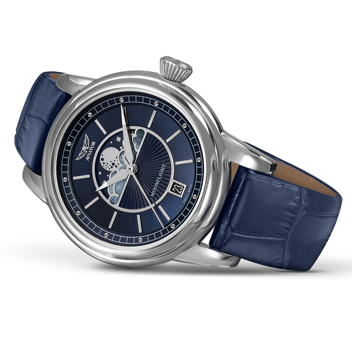 Ve 30. letech 20. století poskytoval každý let legendárního letadla Douglas DC-3 atmosféru elegance a luxusu, která se v dnešních vysokorychlostních komerčních letech nenachází. V každém aspektu dal Douglas DC-3 světu lepší pohled na cestování a definoval tak Zlatý věk letectví – dámské hodinky Aviator V.1.33.0.255.4 z kolekce Moonflight jsou odkazem na tyto časy a zážitky.