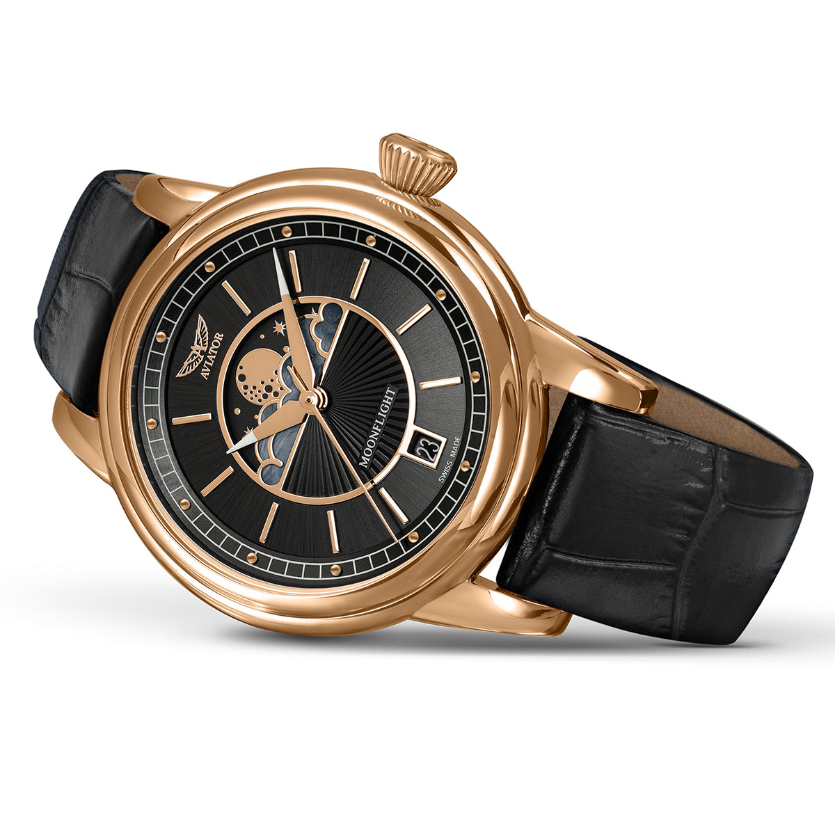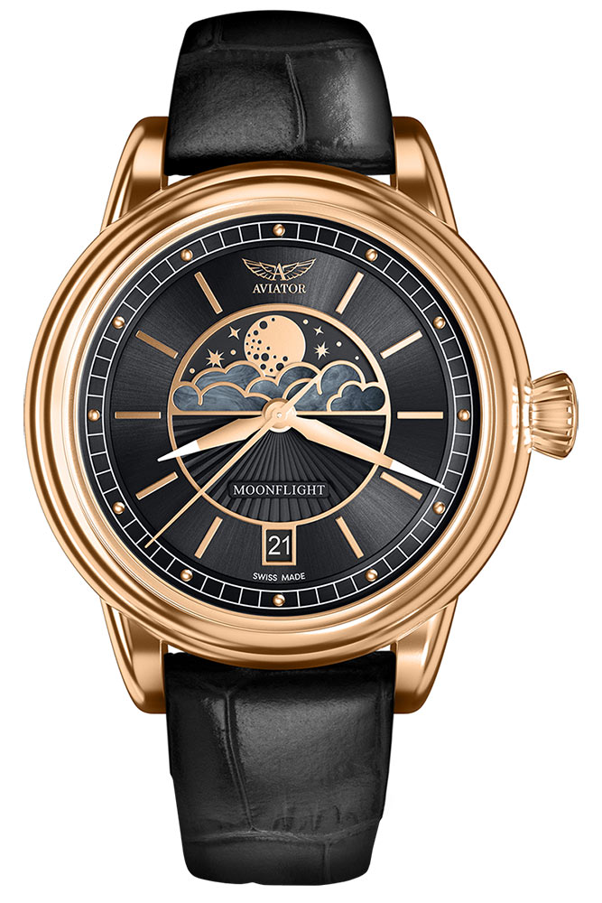 Ve 30. letech 20. století poskytoval každý let legendárního letadla Douglas DC-3 atmosféru elegance a luxusu, která se v dnešních vysokorychlostních komerčních letech nenachází. V každém aspektu dal Douglas DC-3 světu lepší pohled na cestování a definoval tak zlatý věk letectví – dámské hodinky Aviator V.1.33.2.253.4 z kolekce Moonflight jsou odkazem na tyto časy a zážitky.