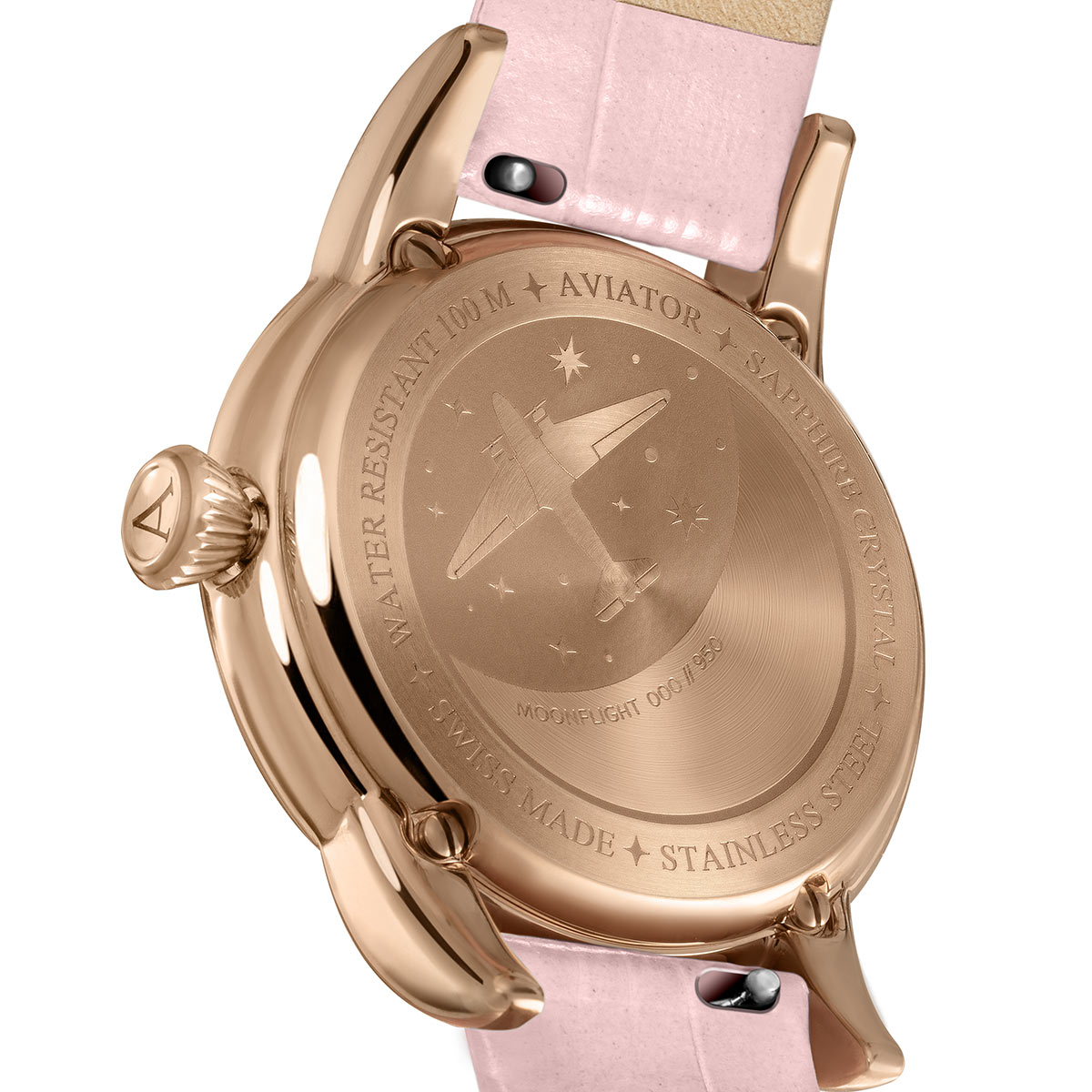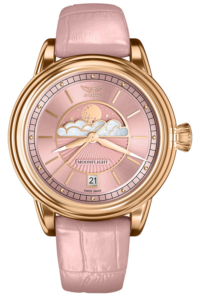 Ve 30. letech 20. století poskytoval každý let legendárního letadla Douglas DC-3 atmosféru elegance a luxusu, která se v dnešních vysokorychlostních komerčních letech nenachází. V každém aspektu dal Douglas DC-3 světu lepší pohled na cestování a definoval tak zlatý věk letectví – dámské hodinky Aviator V.1.33.2.258.4 z kolekce Moonflight jsou odkazem na tyto časy a zážitky.
