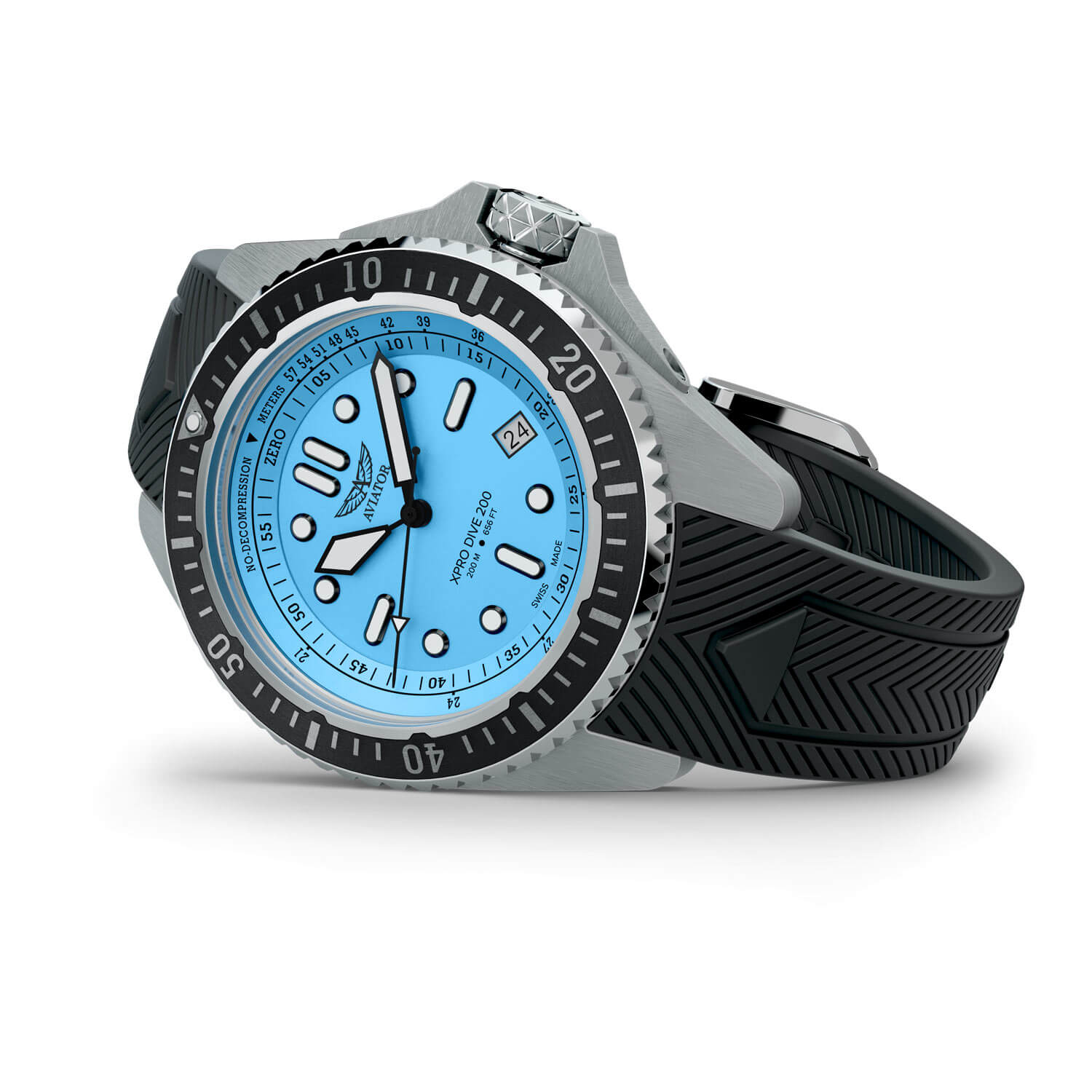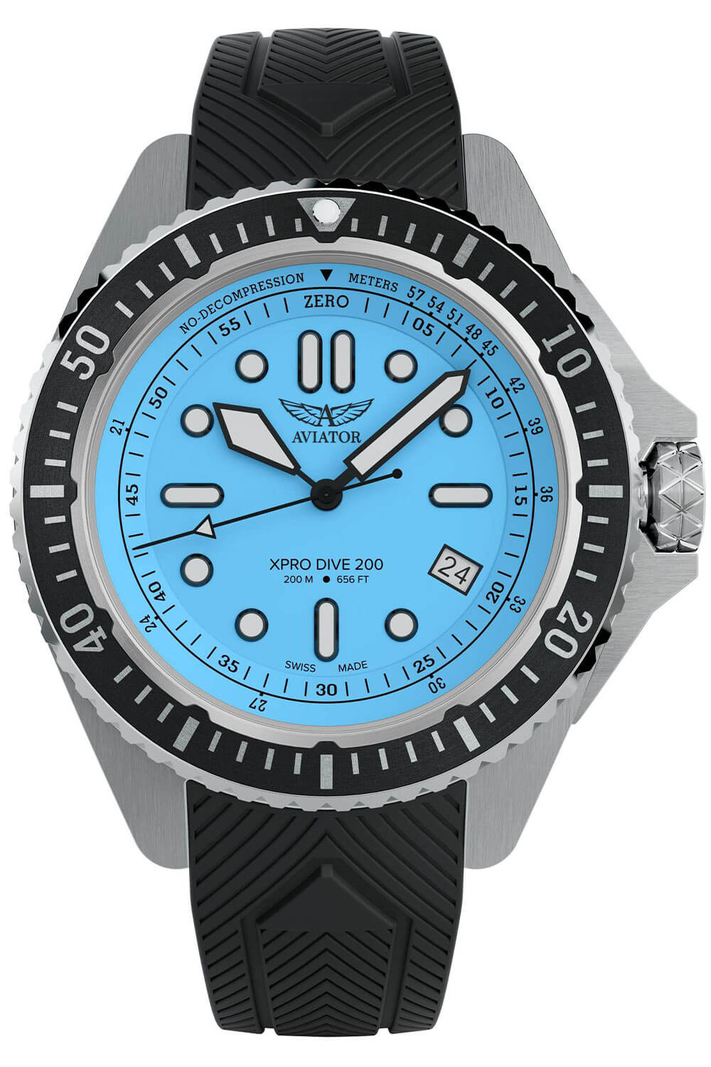Pánské hodinky Aviator XPRO DIVE 200 V.1.42.0.376.6 byly vytvořeny pro lidi, kteří spojují živly – pro piloty a vysokohorské potápěče, pro něž hranice mezi vzduchem a vodou představuje jen další výzvu. Pánské potápěčské hodinky Aviator XPRO Dive 200 jsou nástrojem určeným k použití v extrémních podmínkách, kde o bezpečnosti rozhoduje přesnost. Vyznačují se odolností vůči změnám tlaku, vynikající čitelností a spolehlivostí, nabízejí uživateli to, co žádné běžné sportovní hodinky – kontrolu nad časem, i když se kyslík stává měnou.